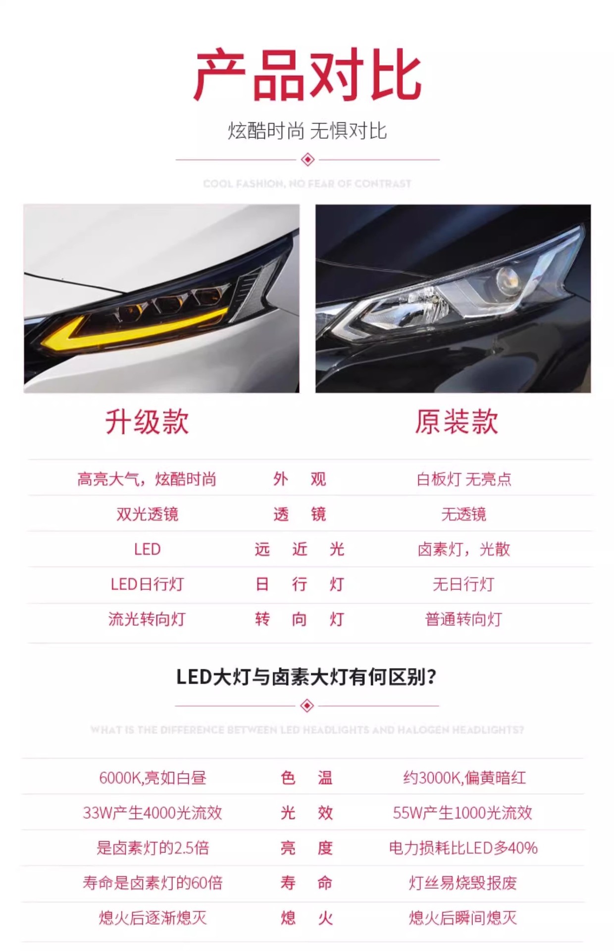 - Enhanced Safety & Style: Integrated LED Daytime Running Lights (DRL) and dynamic flowing turn signals improve road visibility and add a distinctive, luxurious look to your vehicle.