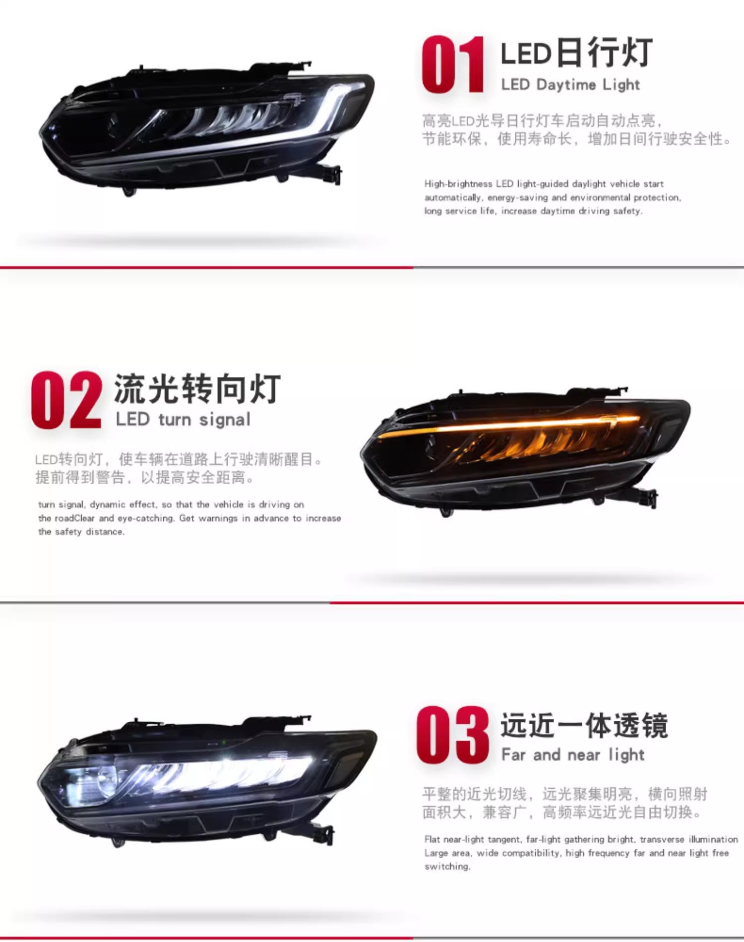 - Precise Fitment: Specifically designed for Honda Inspire 2019-2022 models, ensuring a perfect match and seamless integration with your vehicle’s electrical system and body lines.