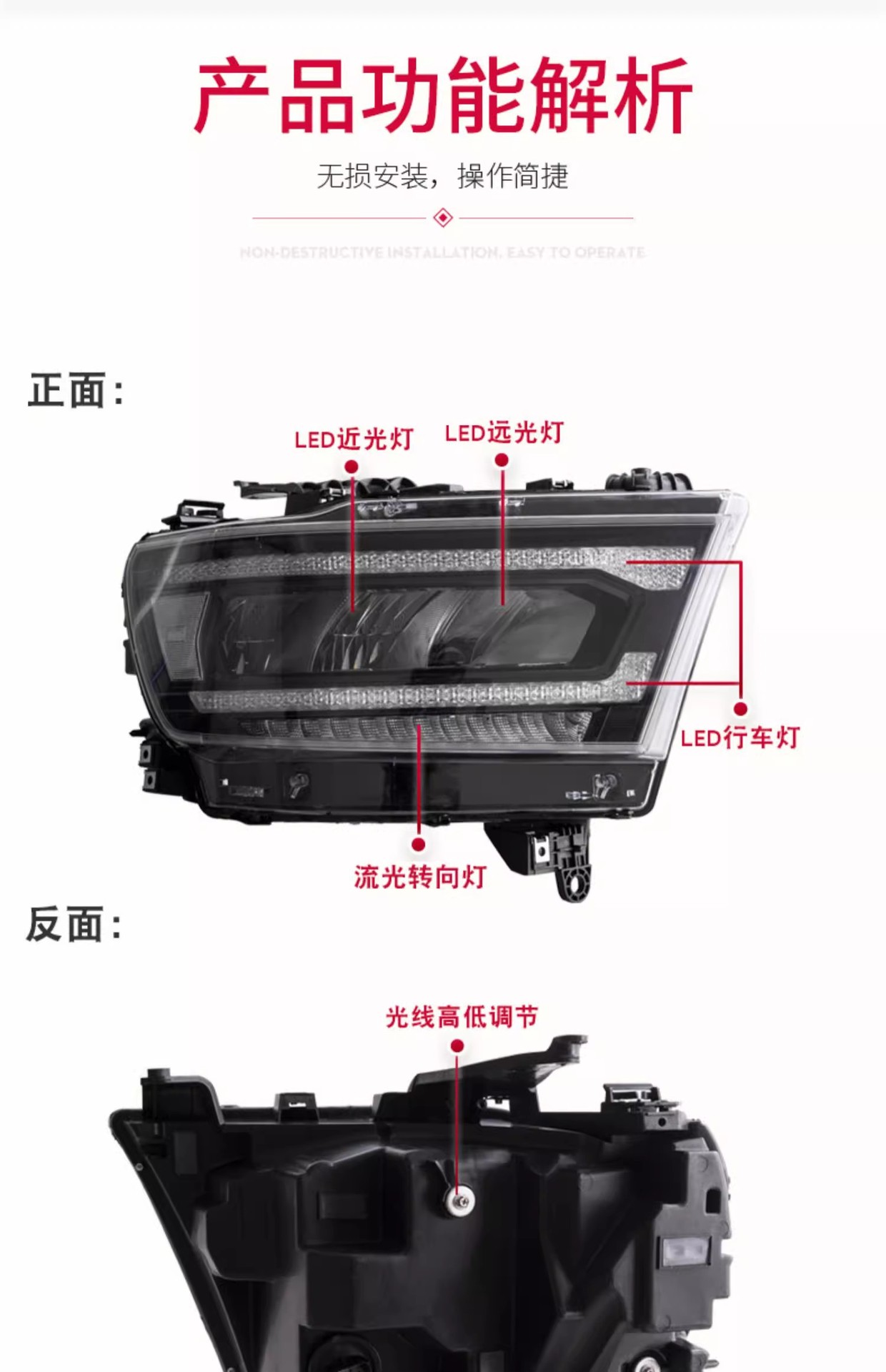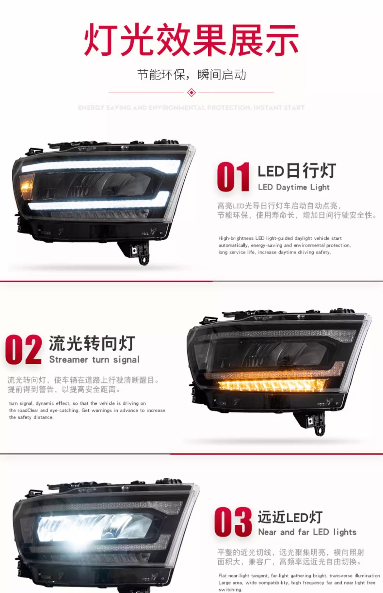 Full LED Headlight Assembly with LED DRL Flowing Turn Signal for Dodge Ram 1500