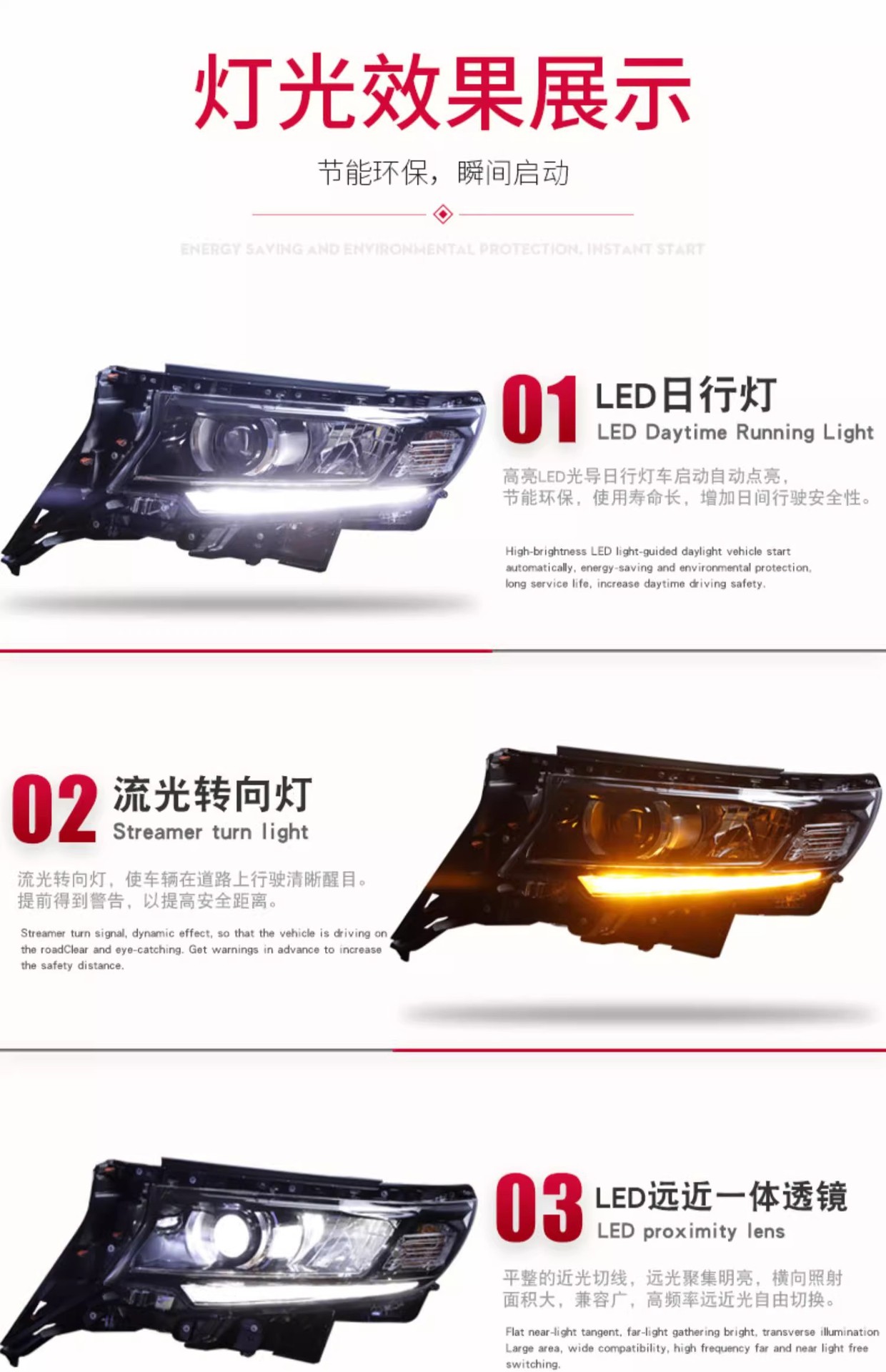 - Enhanced Visibility & Style: Features bright, energy-efficient Full LED illumination for superior nighttime visibility, coupled with stylish LED Daytime Running Lights (DRL) and dynamic sequential turn signals to modernize your vehicle’s appearance.