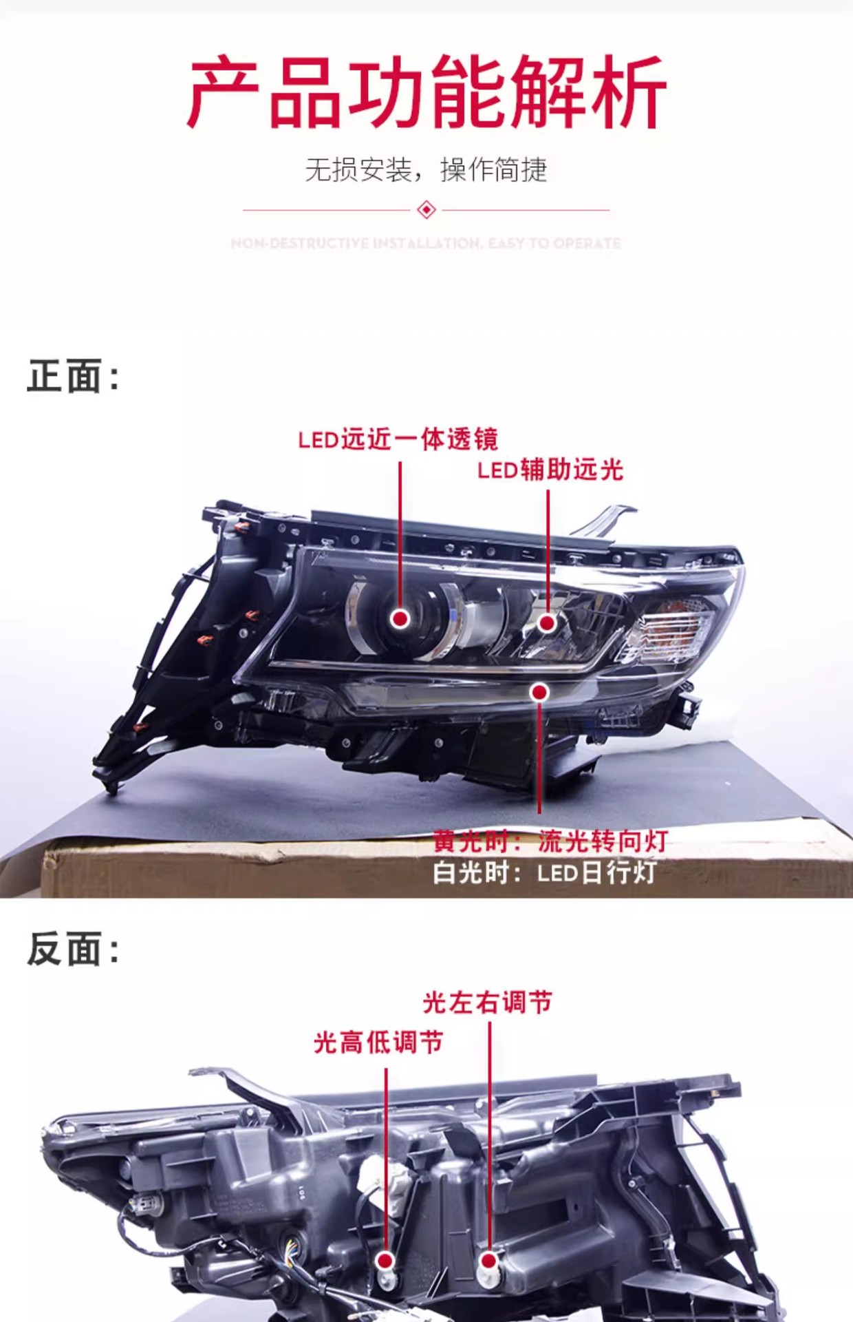 LED Daytime Running Light Headlight Assembly with Bi-Xenon Projector for Toyota Prado 2014-2017