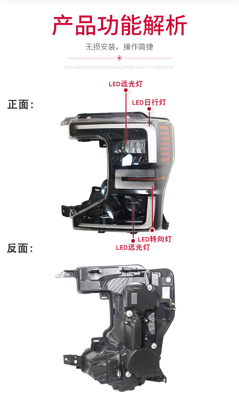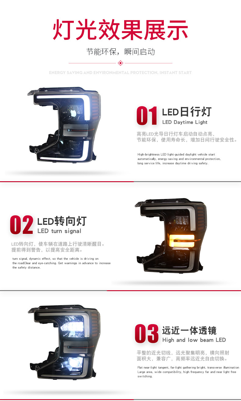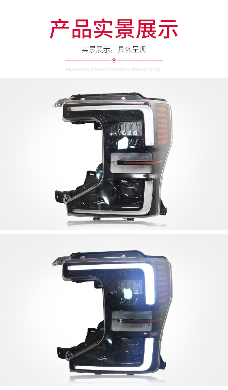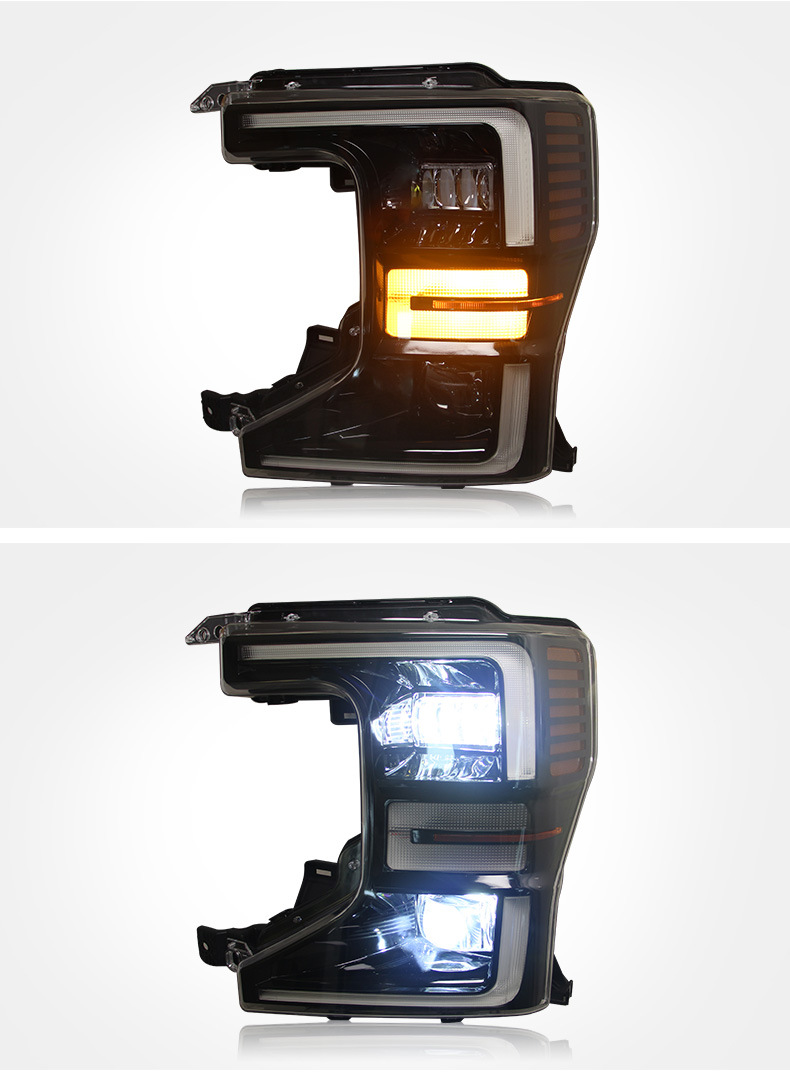 - Enhanced Style: Incorporates a modern LED light guide for Daytime Running Lights (DRL) and integrated LED turn signals, adding a sleek, contemporary, and aggressive look to your F250’s front end.