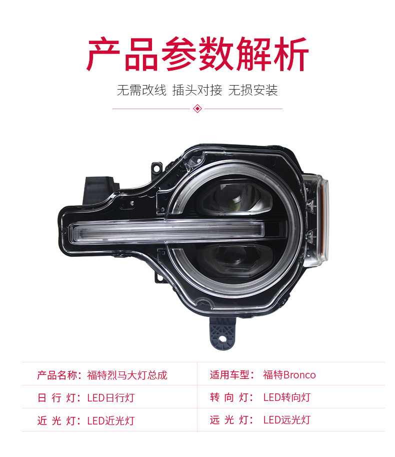 - Precise Fitment: Specifically designed for Ford Bronco 2020-2022 models, ensuring a perfect, direct-fit replacement for your original headlamp assembly. Upgrade your vehicle aesthetics and lighting performance.
