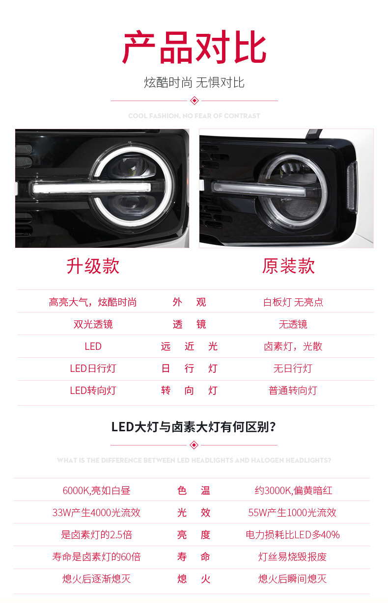- Premium LED Technology: Features advanced full LED lighting with high-performance LED lenses, providing superior illumination, enhanced visibility, and a modern, sleek look compared to traditional halogen lights.