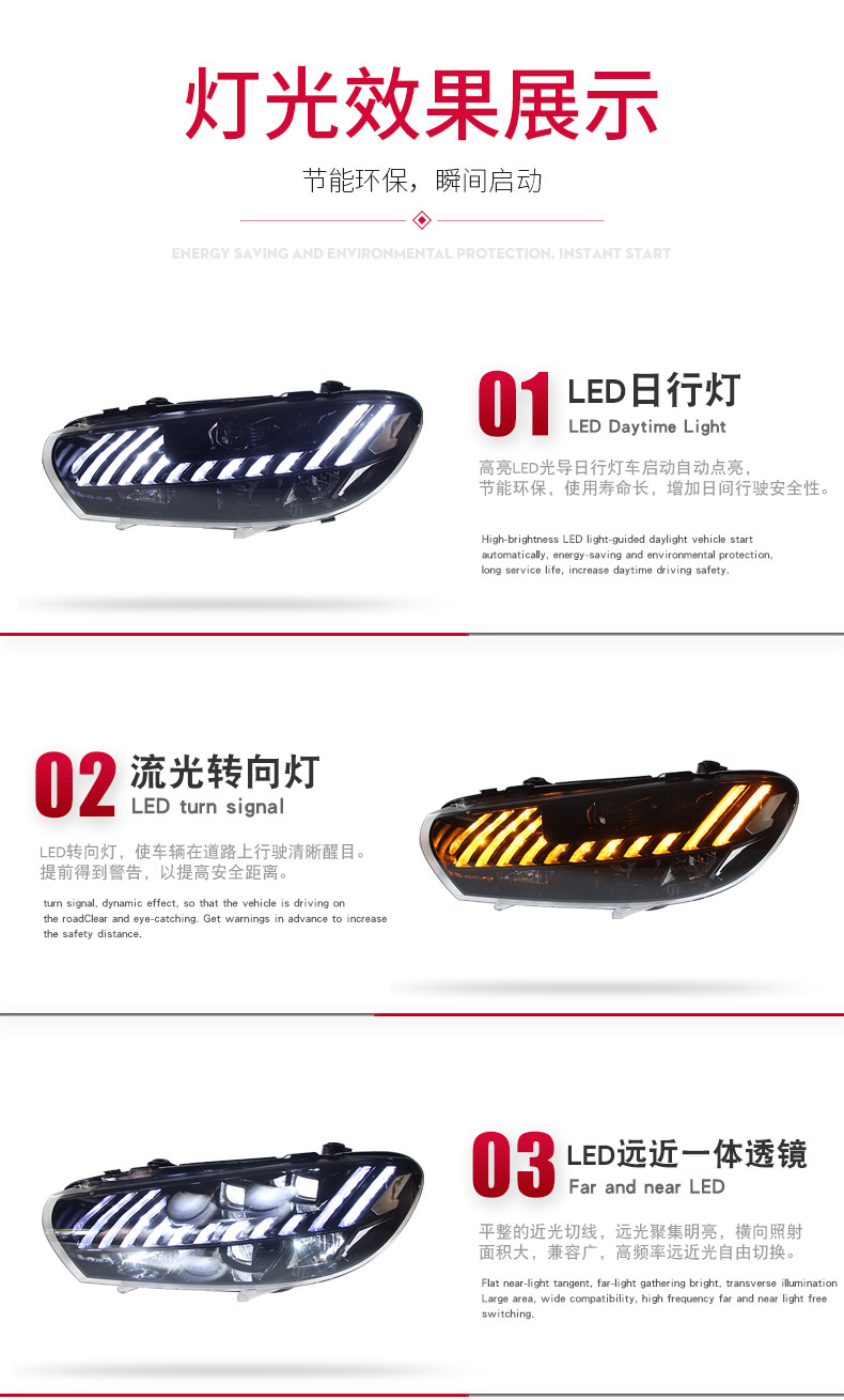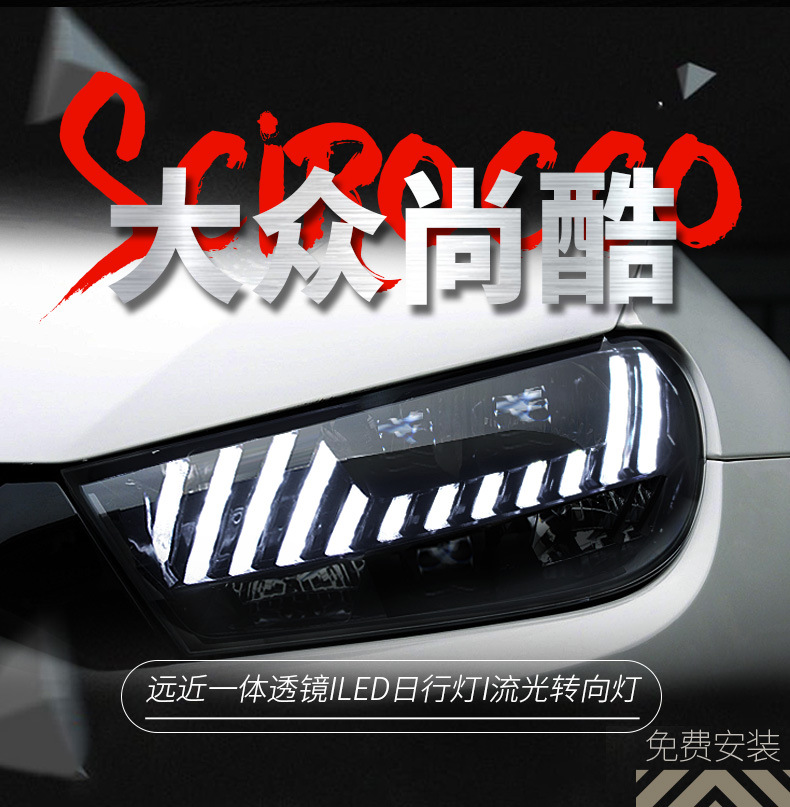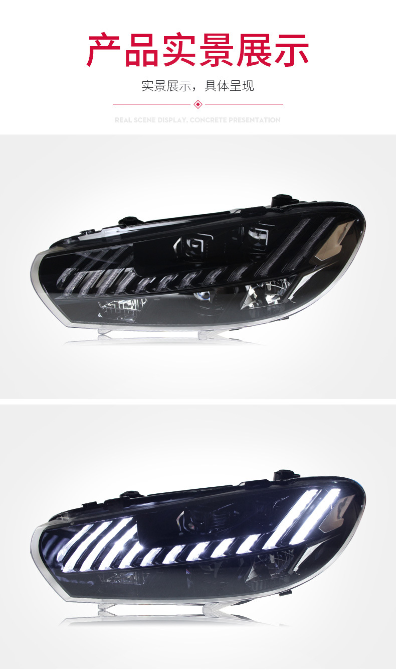 Full LED Headlight Assembly with LED DRL Flowing Turn Signal Projector Headlight for Volkswagen Scirocco (2009-2017)
