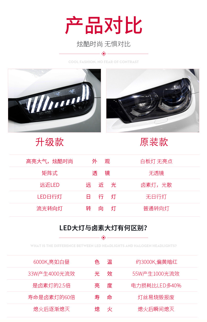 - Dynamic Lighting Design: Integrated LED daytime running lights (DRL) and distinctive flowing turn signals provide a modern, aggressive look, upgrading your vehicle’s aesthetic appeal.