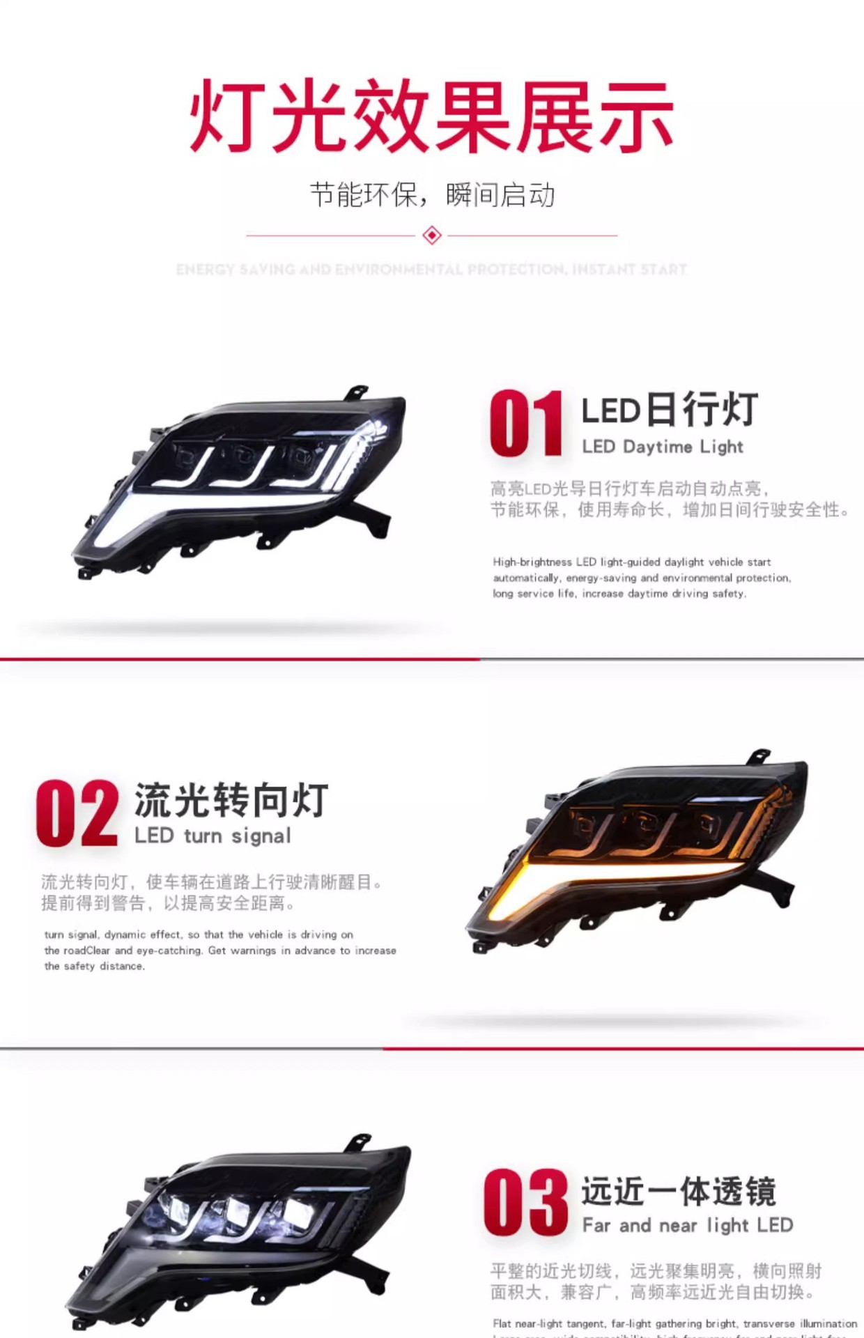 - Premium LED Illumination: Features advanced full LED technology for superior brightness and energy efficiency, providing enhanced visibility and safety on the road.