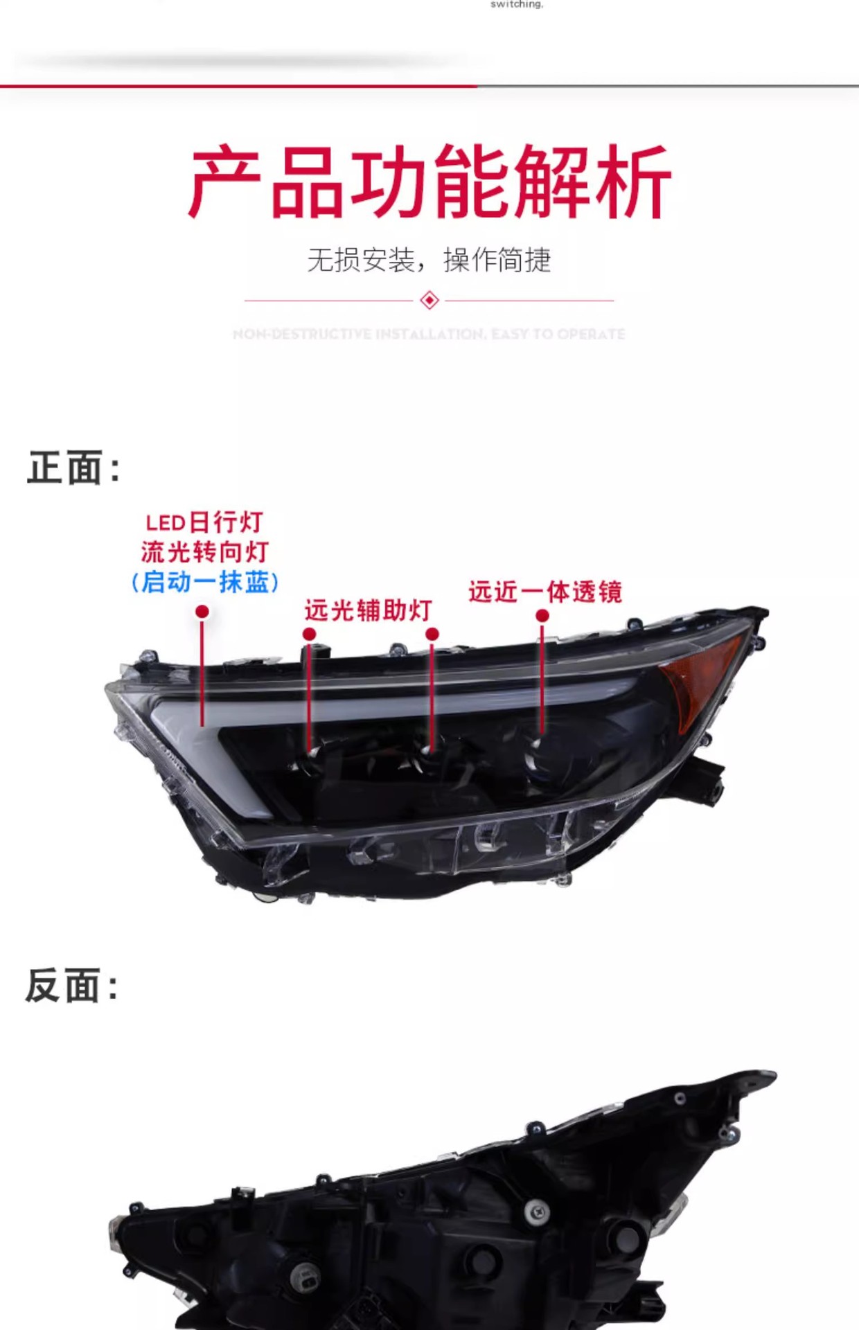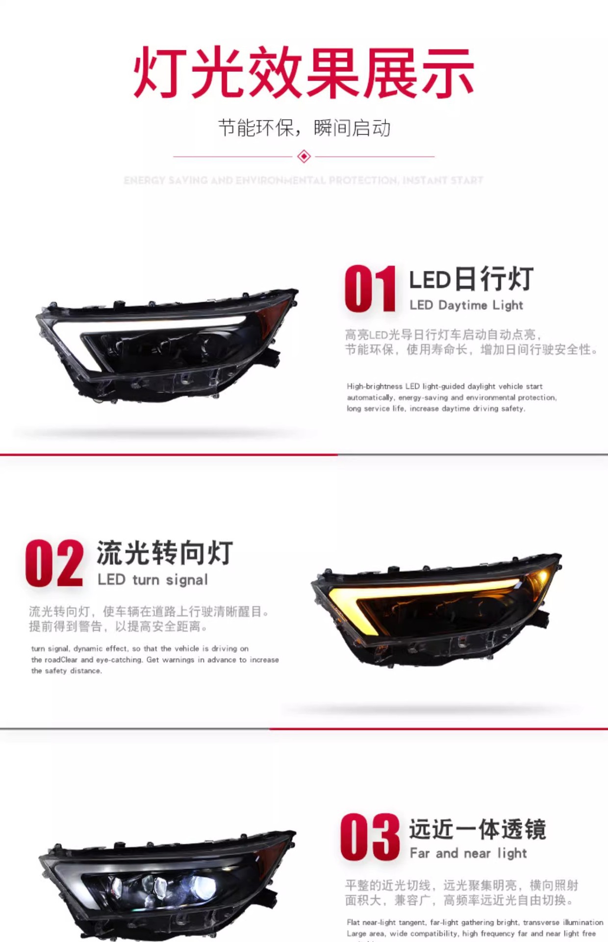 - Enhanced Modern Aesthetics: Incorporates stylish LED Daytime Running Lights (DRL) and dynamic flowing turn signals, giving your RAV4 a contemporary and distinctive look.
