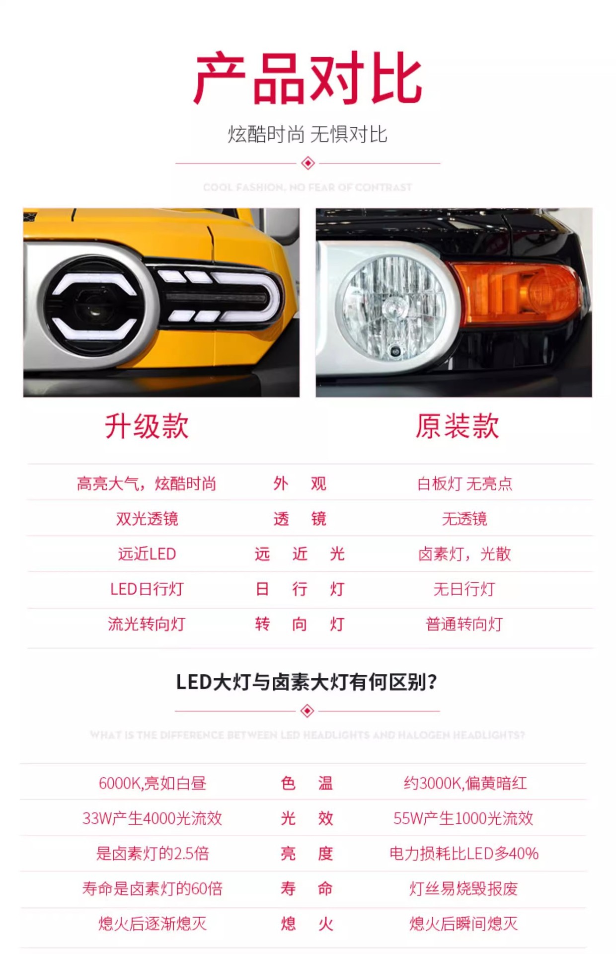 - What’s Included: One (1) Full LED Headlight Assembly for Left or Right side (please order two for a pair). Upgrade your FJ Cruiser with superior illumination and a sleek, updated look.