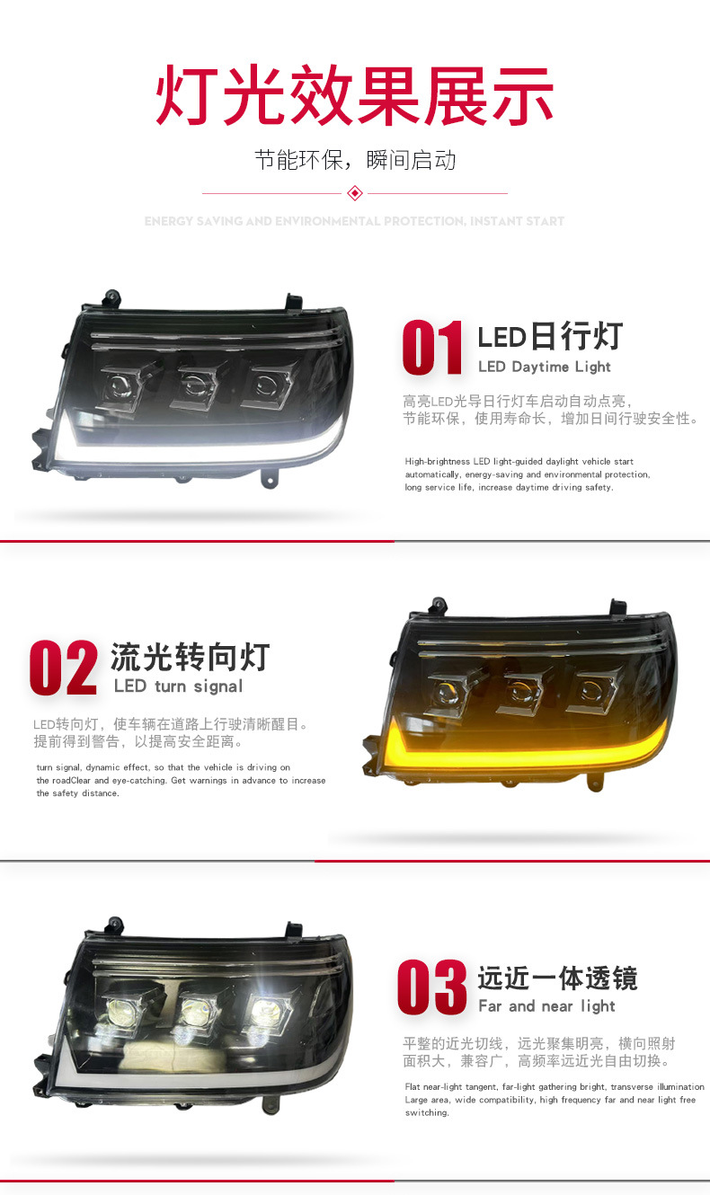 Full LED Headlight Assembly with LED Lens DRL Turn Signal for Toyota Land Cruiser LC100