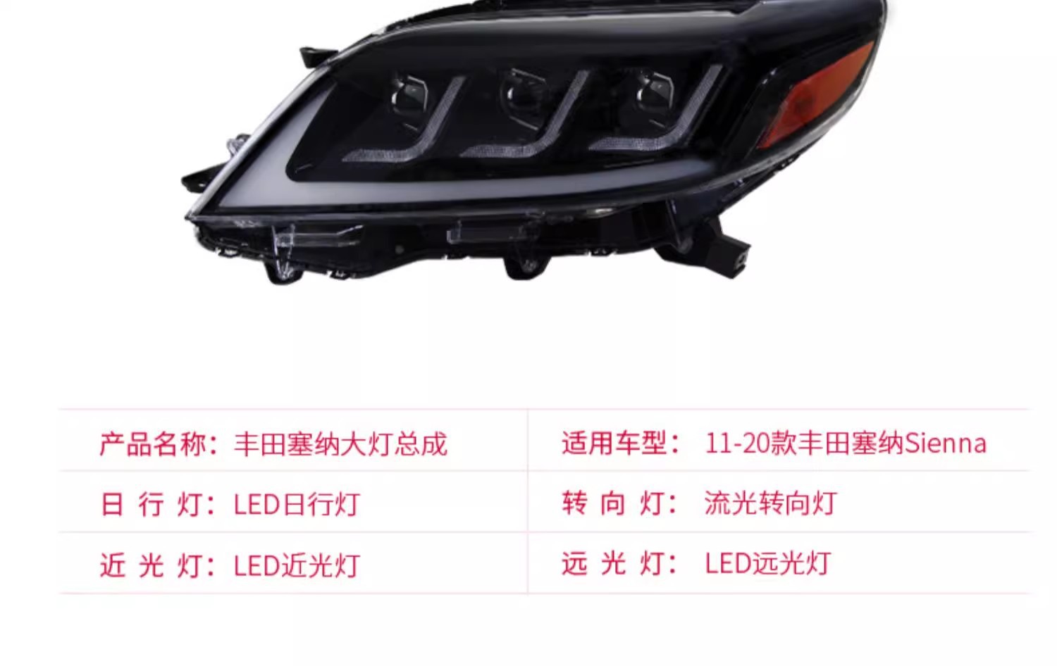 Full LED Headlight Assembly with Projector Lens and Sequential Turn Signal for Toyota Sienna (2011-2020)