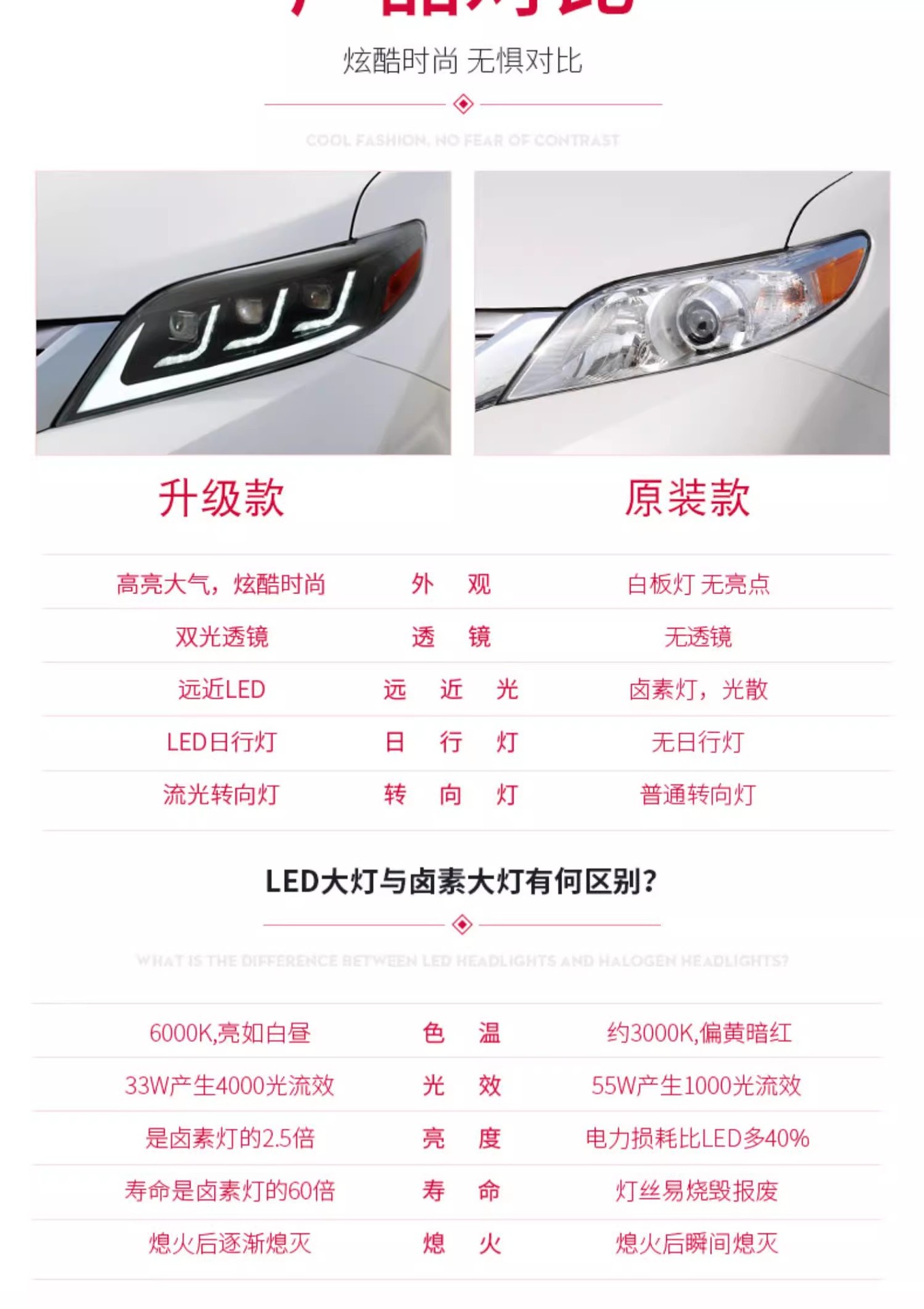 - Enhanced Aesthetics & Modern Design: Upgrade your vehicle’s appearance with a sleek LED headlight design, featuring an integrated projector lens for improved light output and a stylish, dynamic sequential turn signal for a modern touch.
