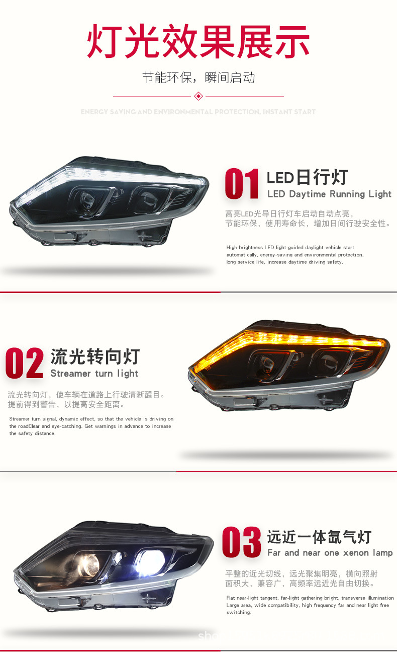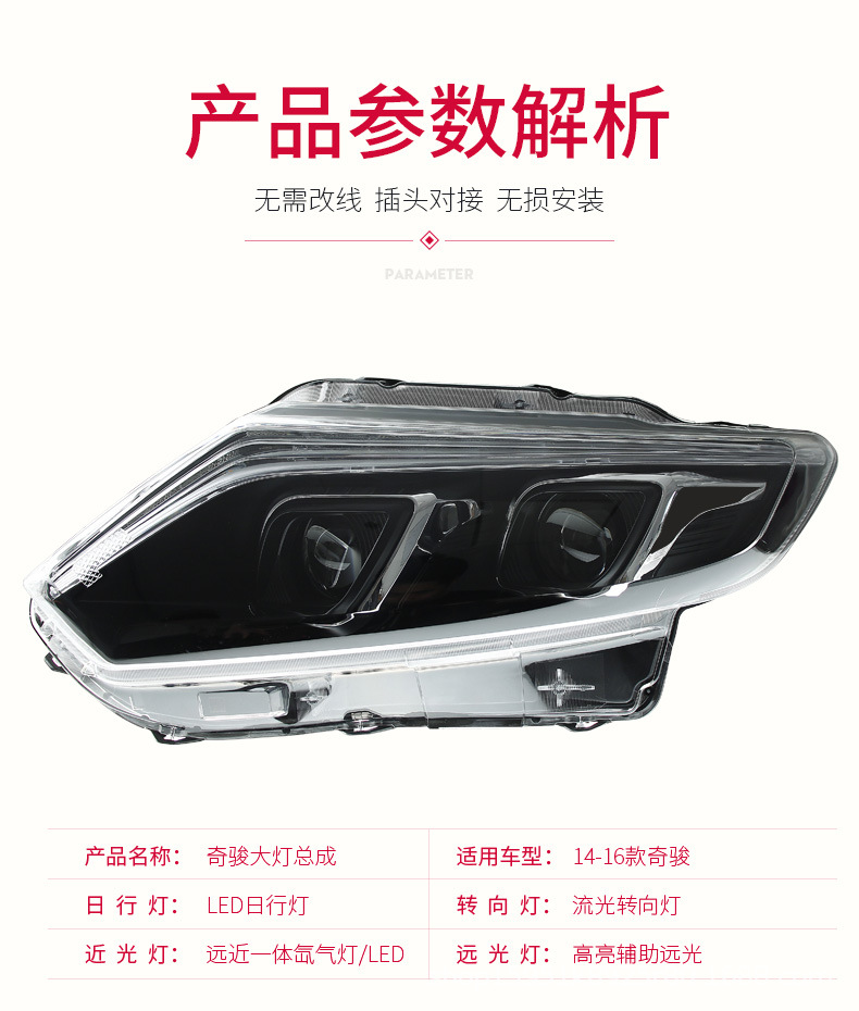 Full LED Headlight Assembly with Projector Lens DRL Sequential Turn Signal for Nissan Qashqai (2014-2016)