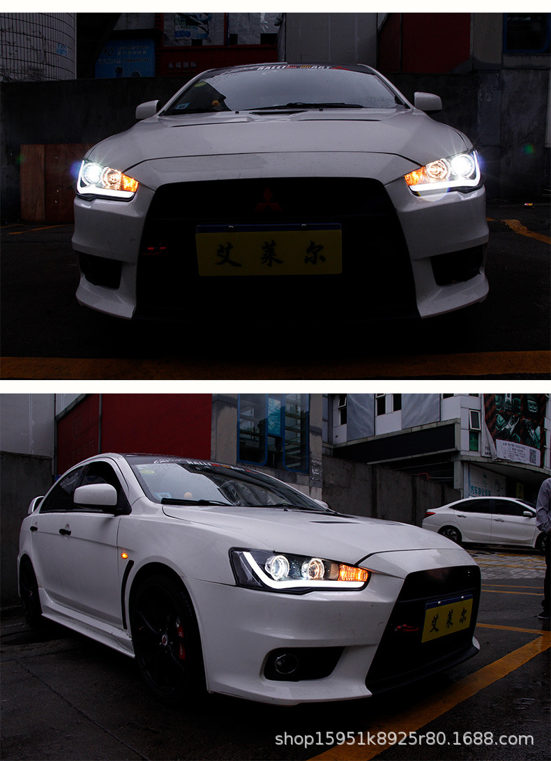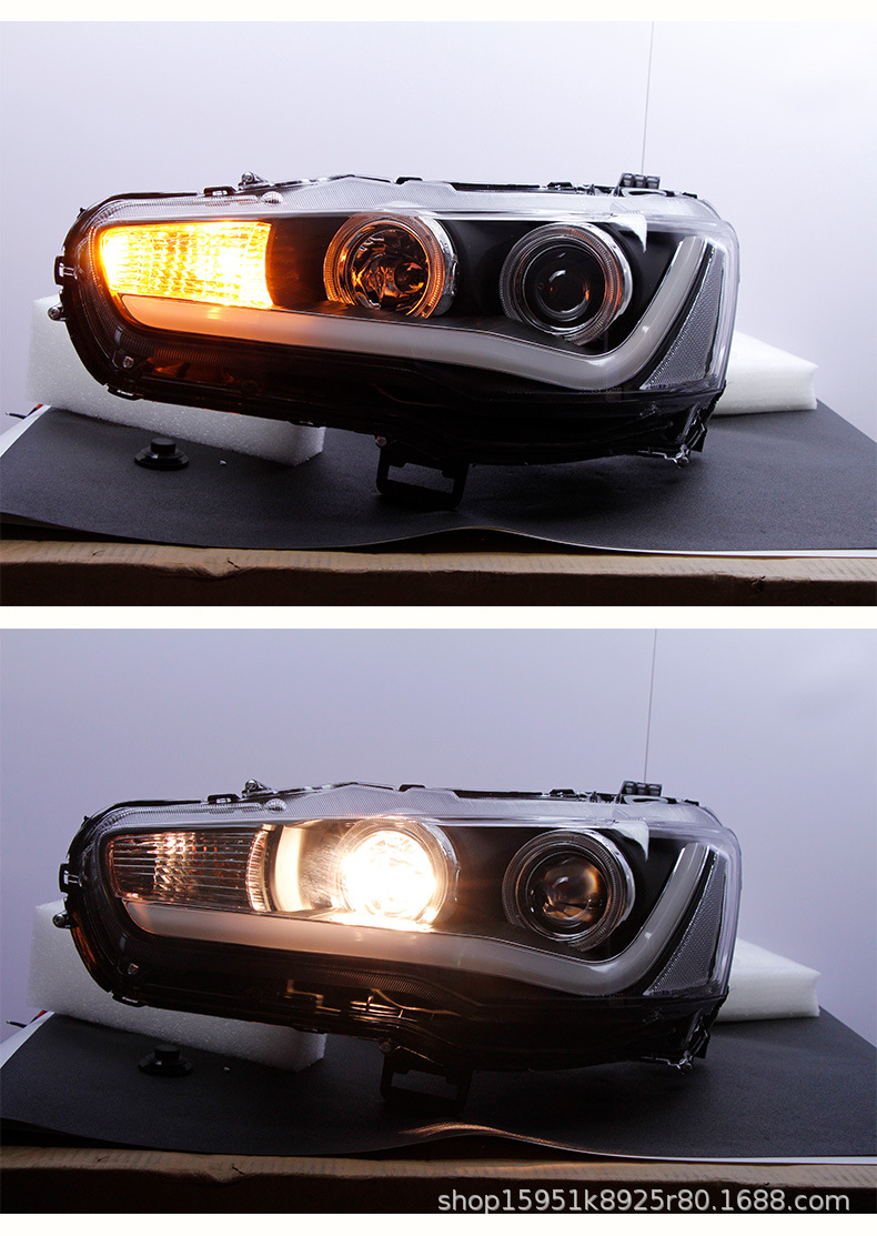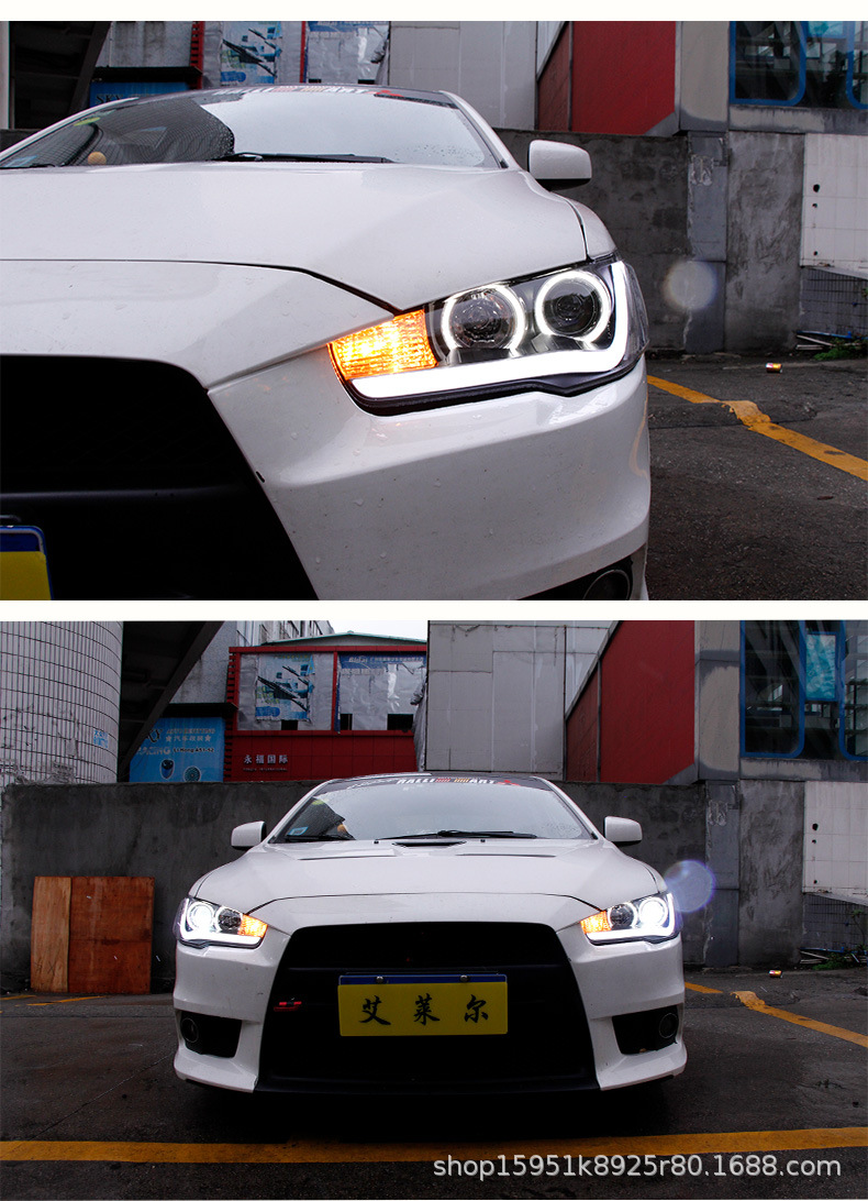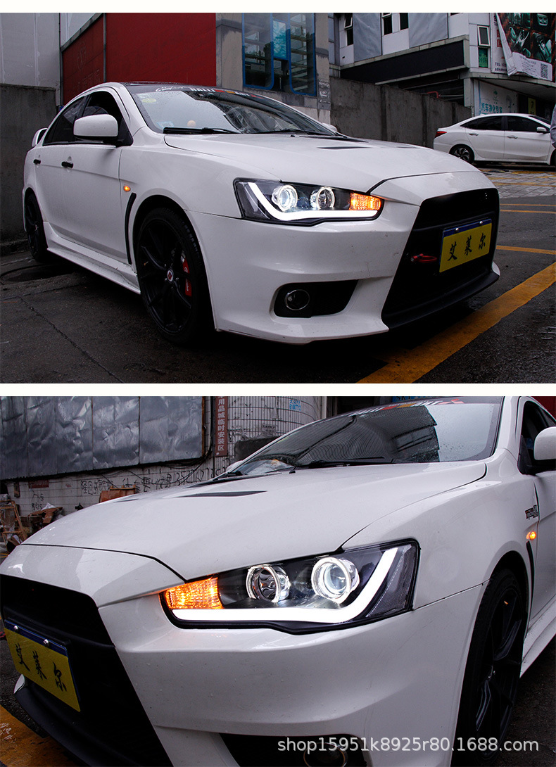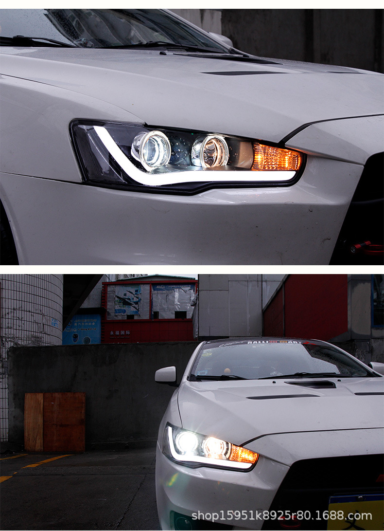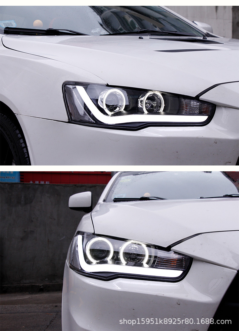 Full LED Headlight Assembly with Projector Lens and Angel Eye DRL for Mitsubishi Lancer Evolution X