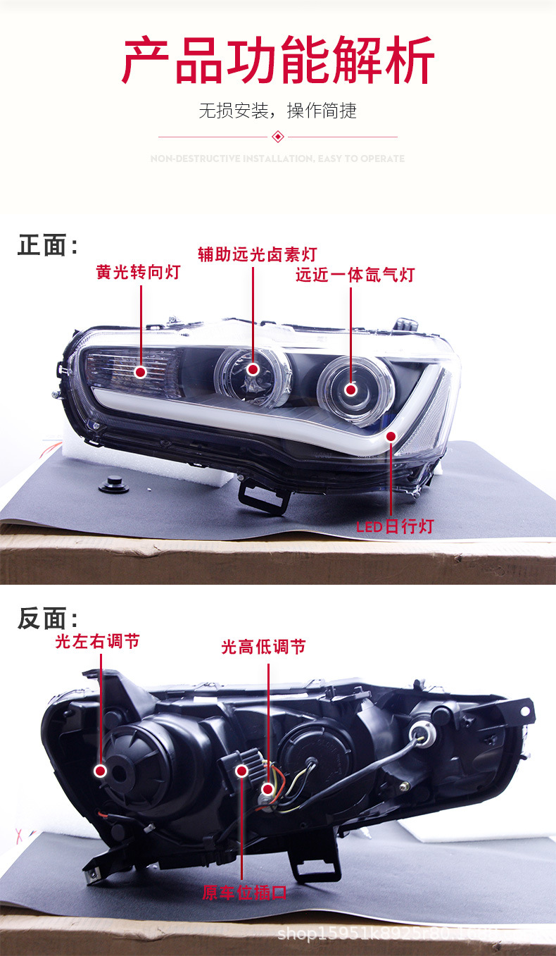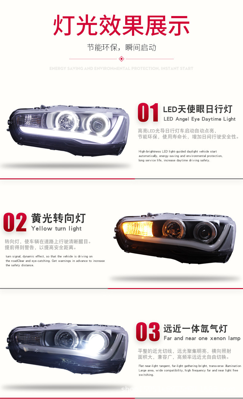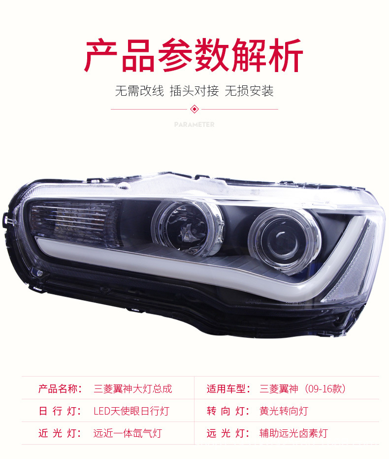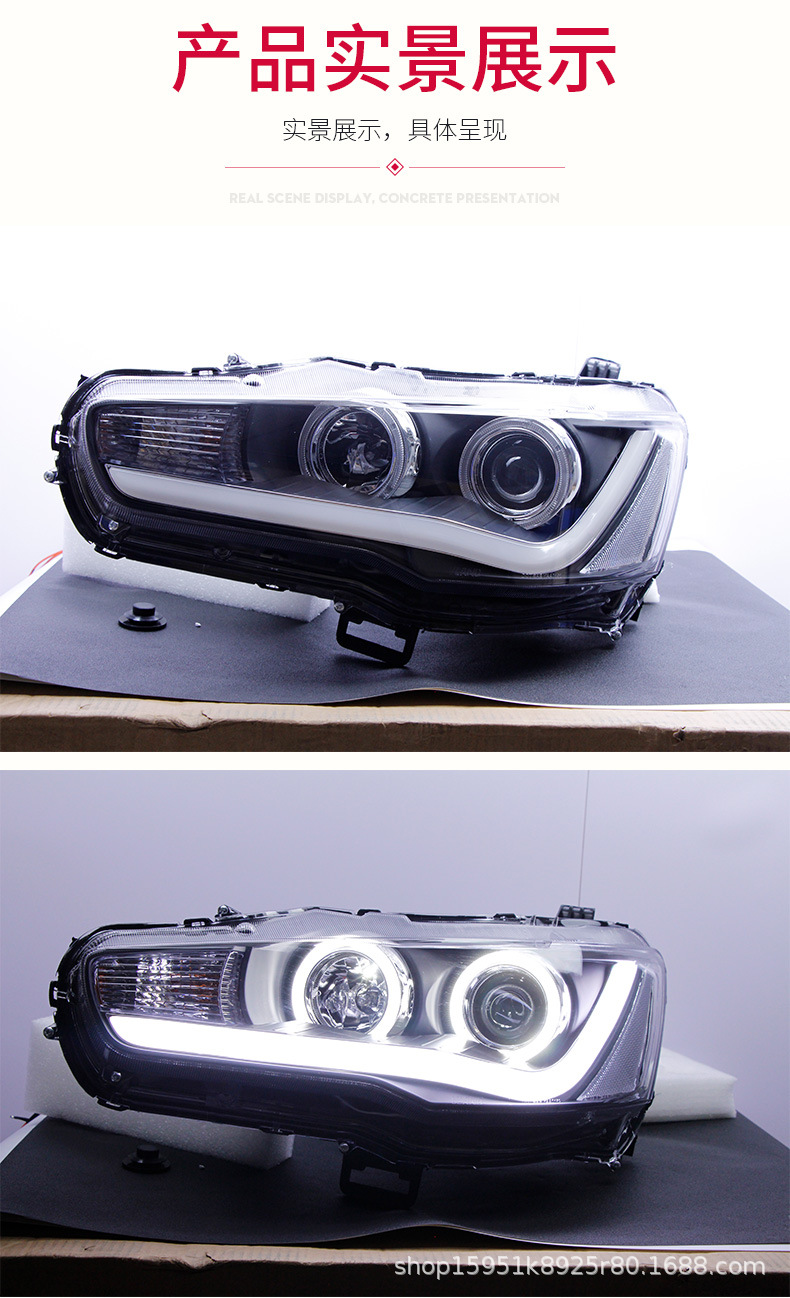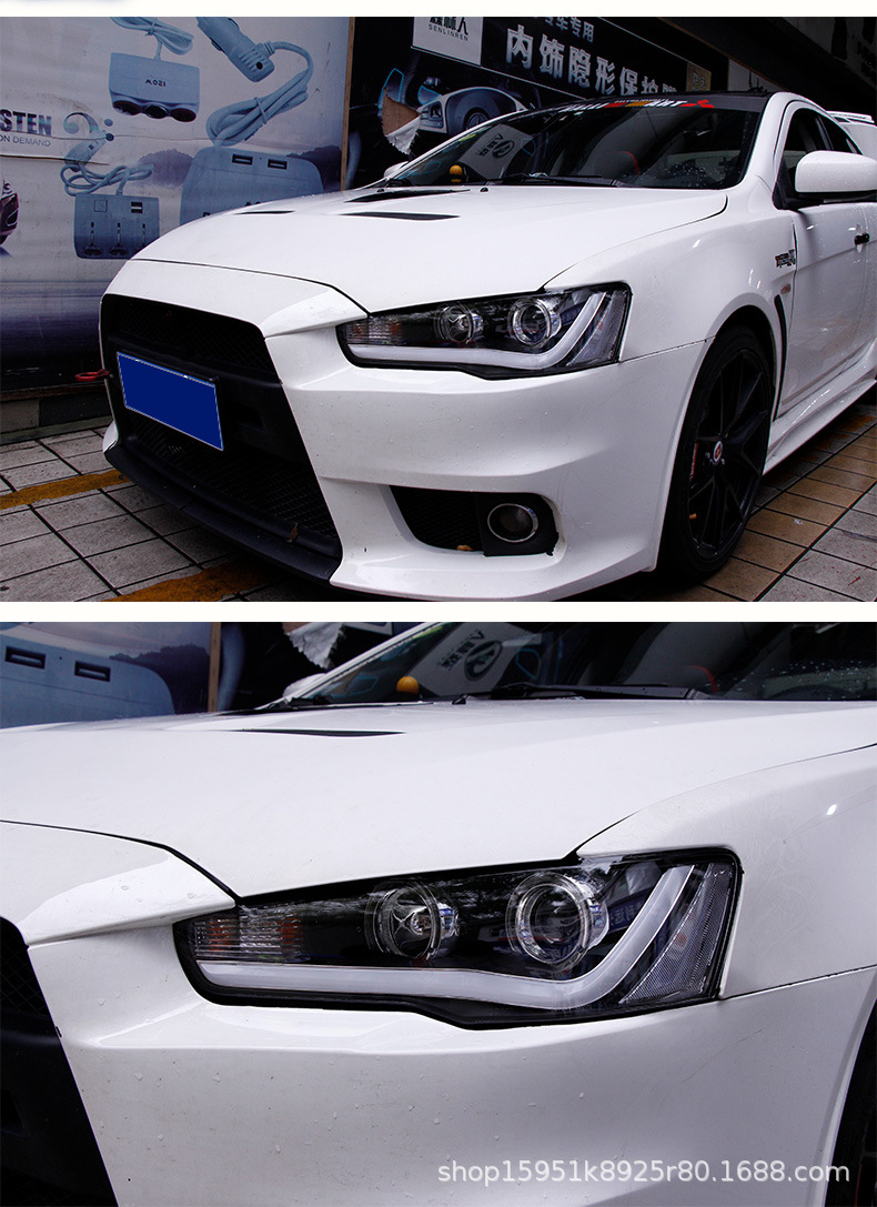 Full LED Headlight Assembly with Projector Lens and Angel Eye DRL for Mitsubishi Lancer Evolution X