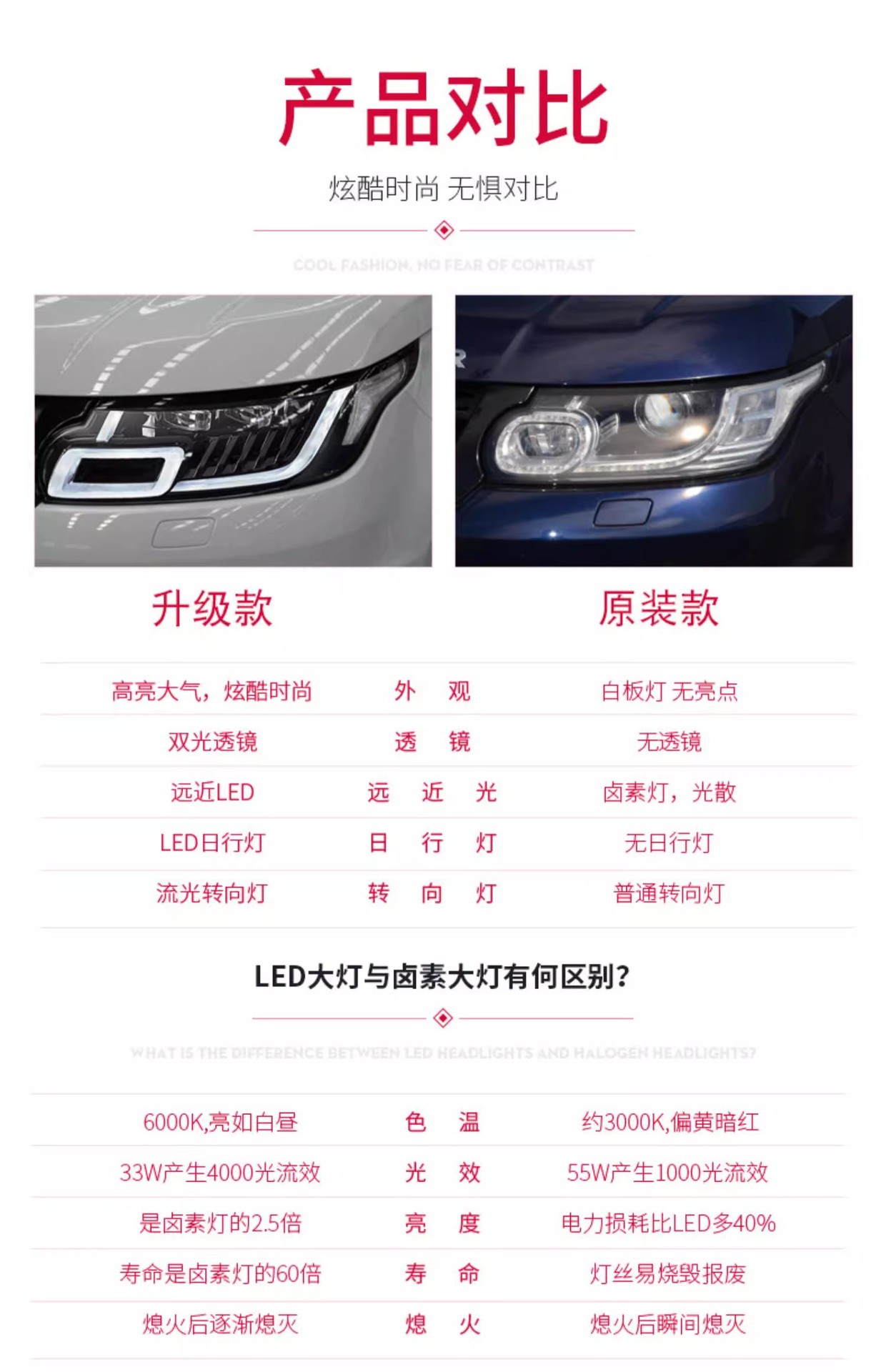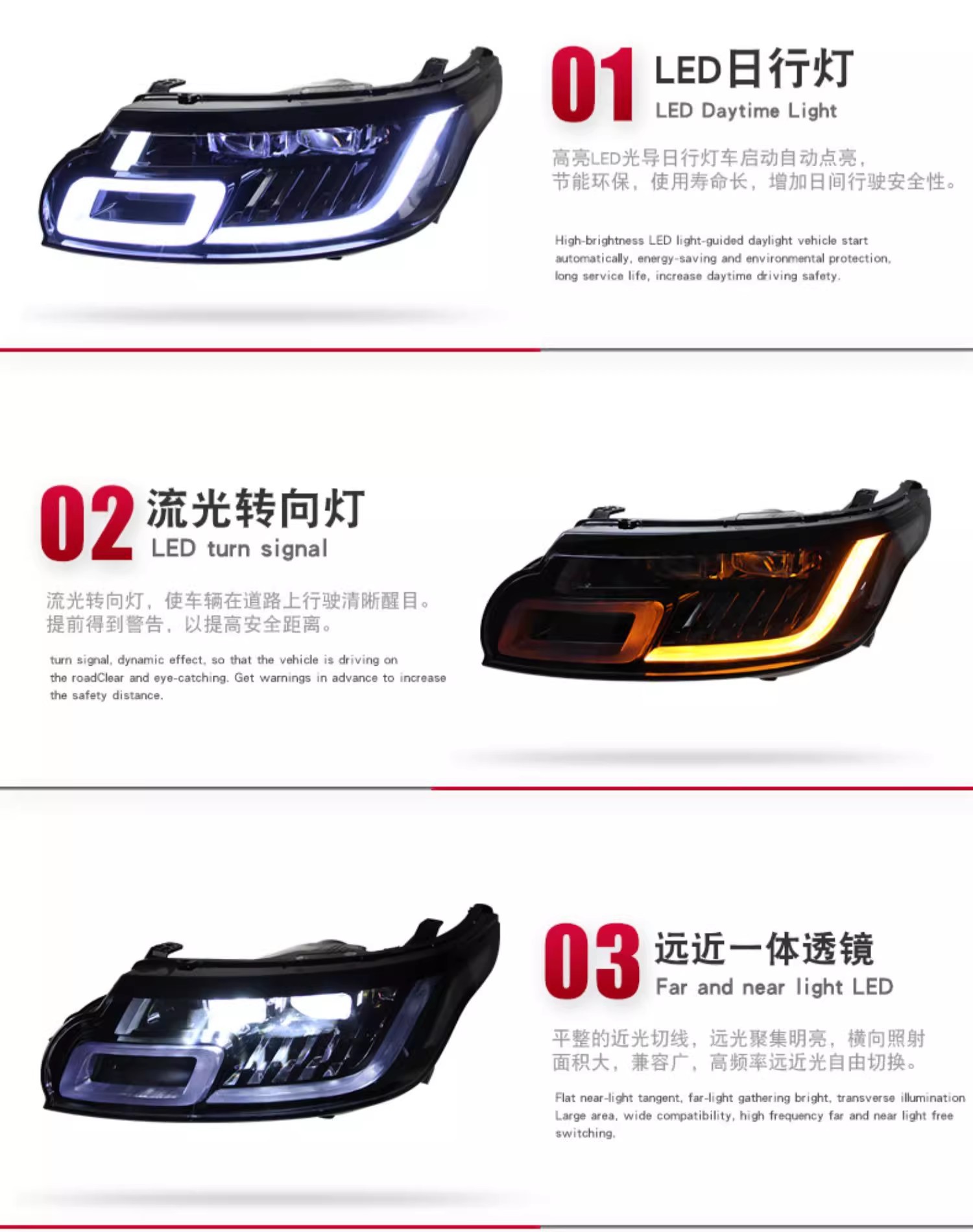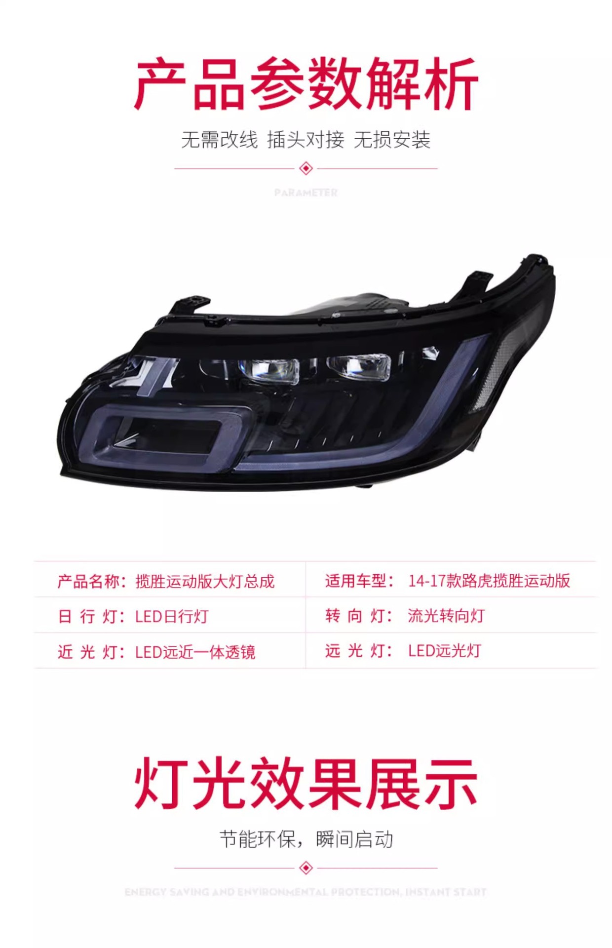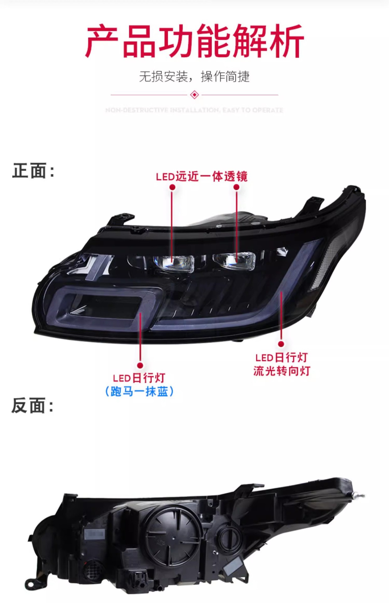 Full LED Headlight Assembly with Projector Lens DRL Sequential Turn Signal for Land Rover Range Rover Sport 2014-2017