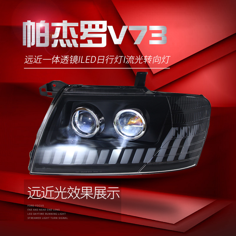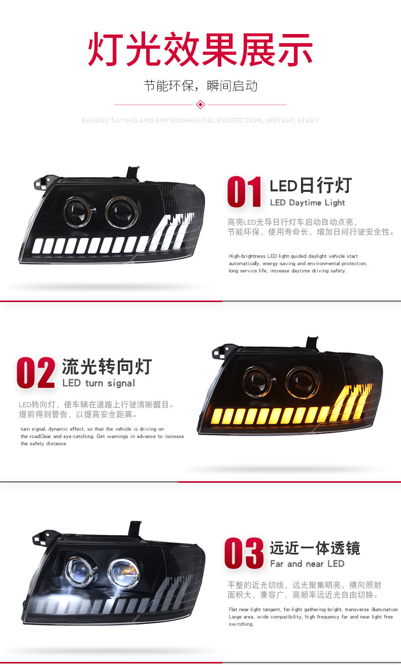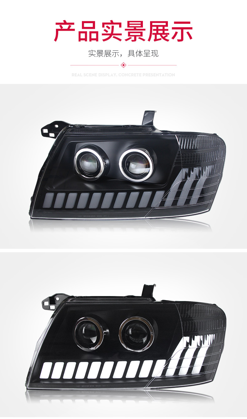 Full LED Headlight Assembly with Projector Lens DRL Sequential Turn Signal for Mitsubishi Pajero V73 V77