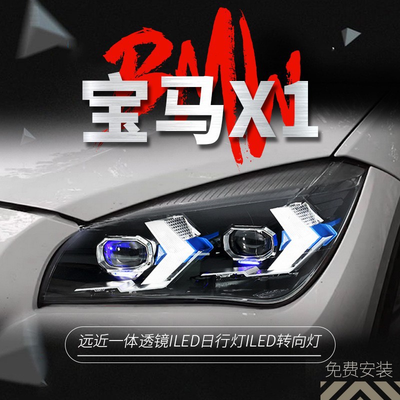 Full LED Headlight Assembly with Projector Lens and Arrow Style DRL Turn Signal for BMW X1 E84 2010-2015