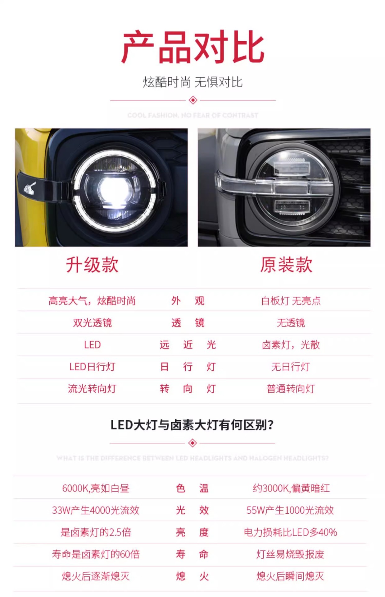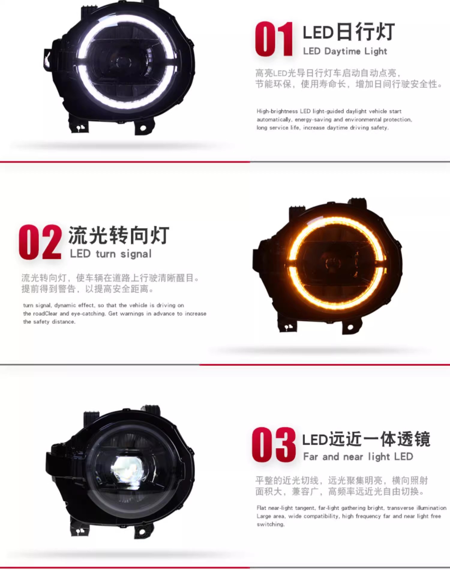 - Enhanced Styling: Features a modern Big G-style design with LED running lights and dynamic sequential turn signals, elevating your vehicle’s aesthetic appeal with a distinctive and aggressive look.