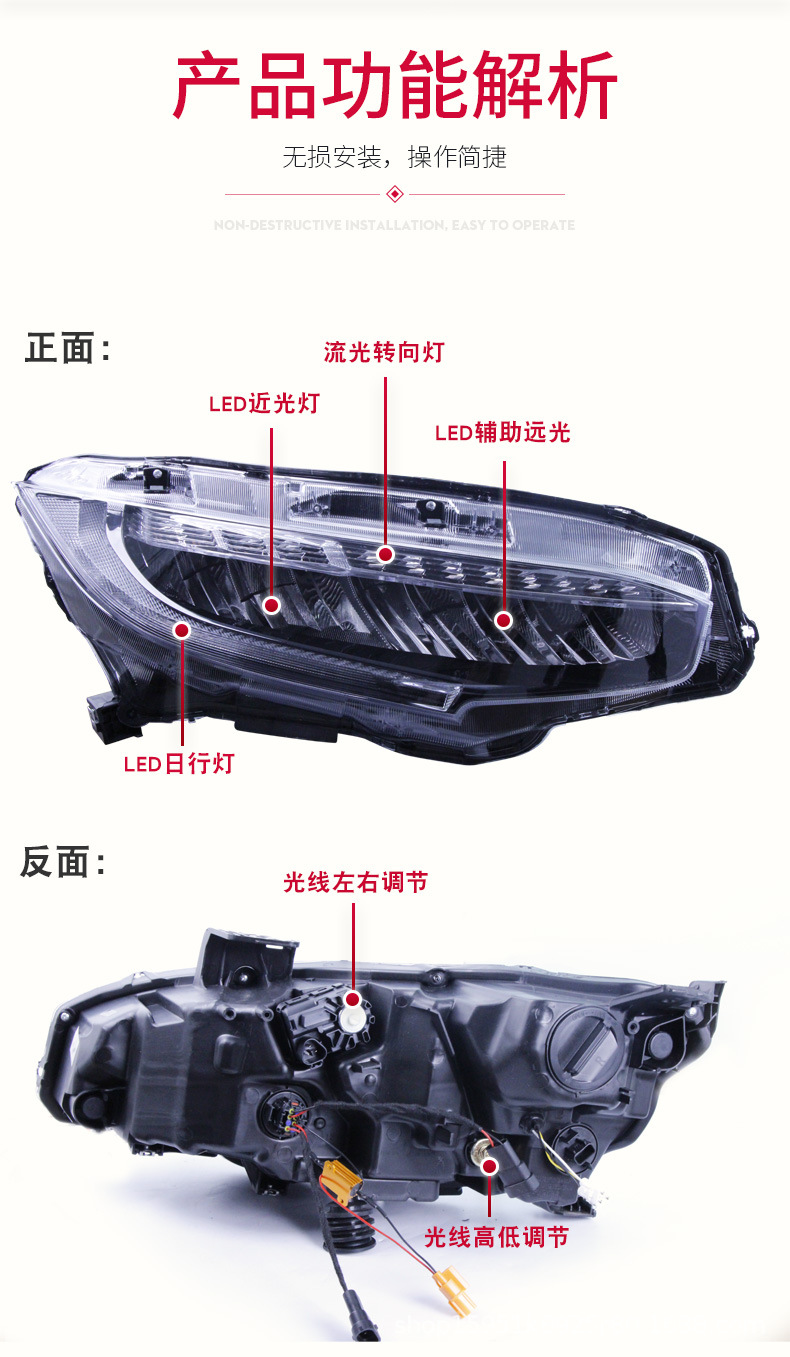 - Precise Fitment: Specifically designed for Honda Civic 10th Gen models from 2016 to 2020, ensuring a perfect, direct-fit replacement for your original headlights.