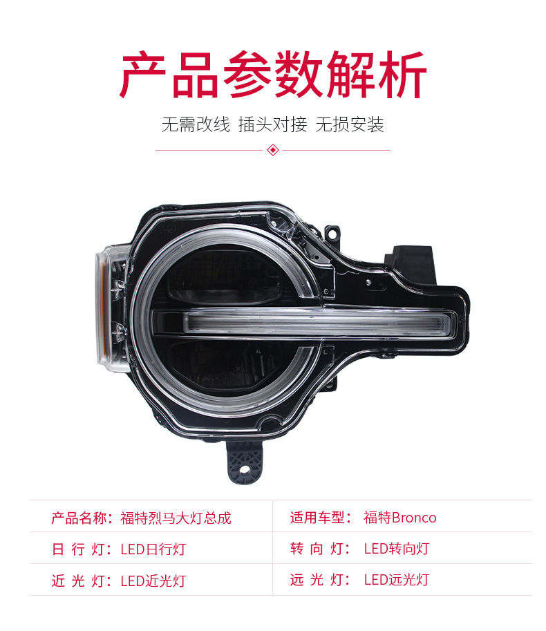 - Precise Fitment: Specifically designed for Ford Bronco 2020-2024 models, ensuring a perfect, direct-fit replacement for your original headlight assembly.