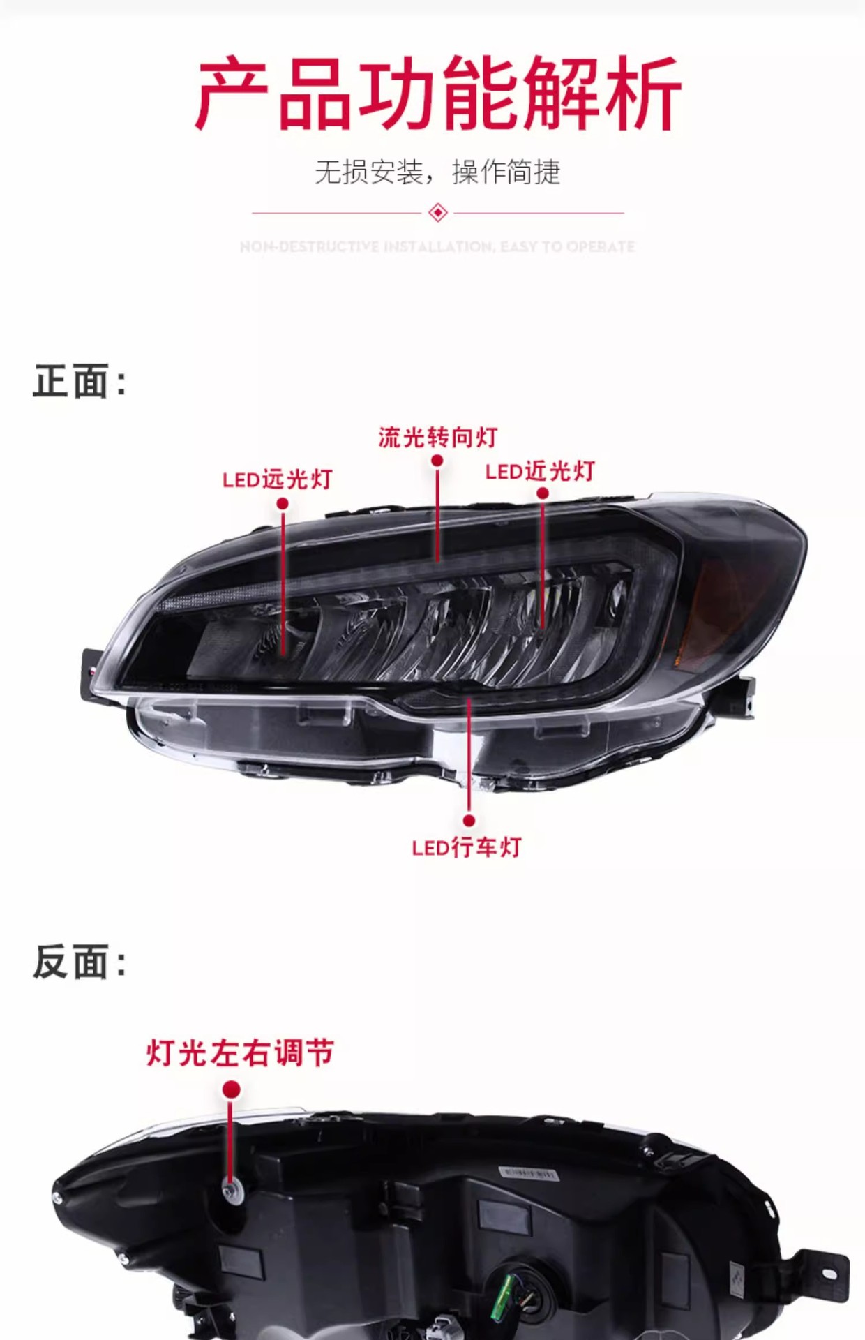 - Precise Fitment: Specifically designed for Subaru Impreza WRX 2015-2020 models, ensuring perfect compatibility and seamless integration with your vehicle’s electrical system and aesthetics. Direct replacement for original headlights.