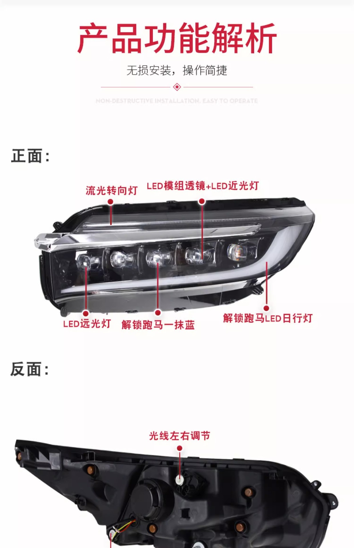 - Enhanced Driving Safety: Integrated with dynamic LED daytime running lights (DRL) and sequential turn signals, significantly improving road presence and signaling clarity for safer driving.