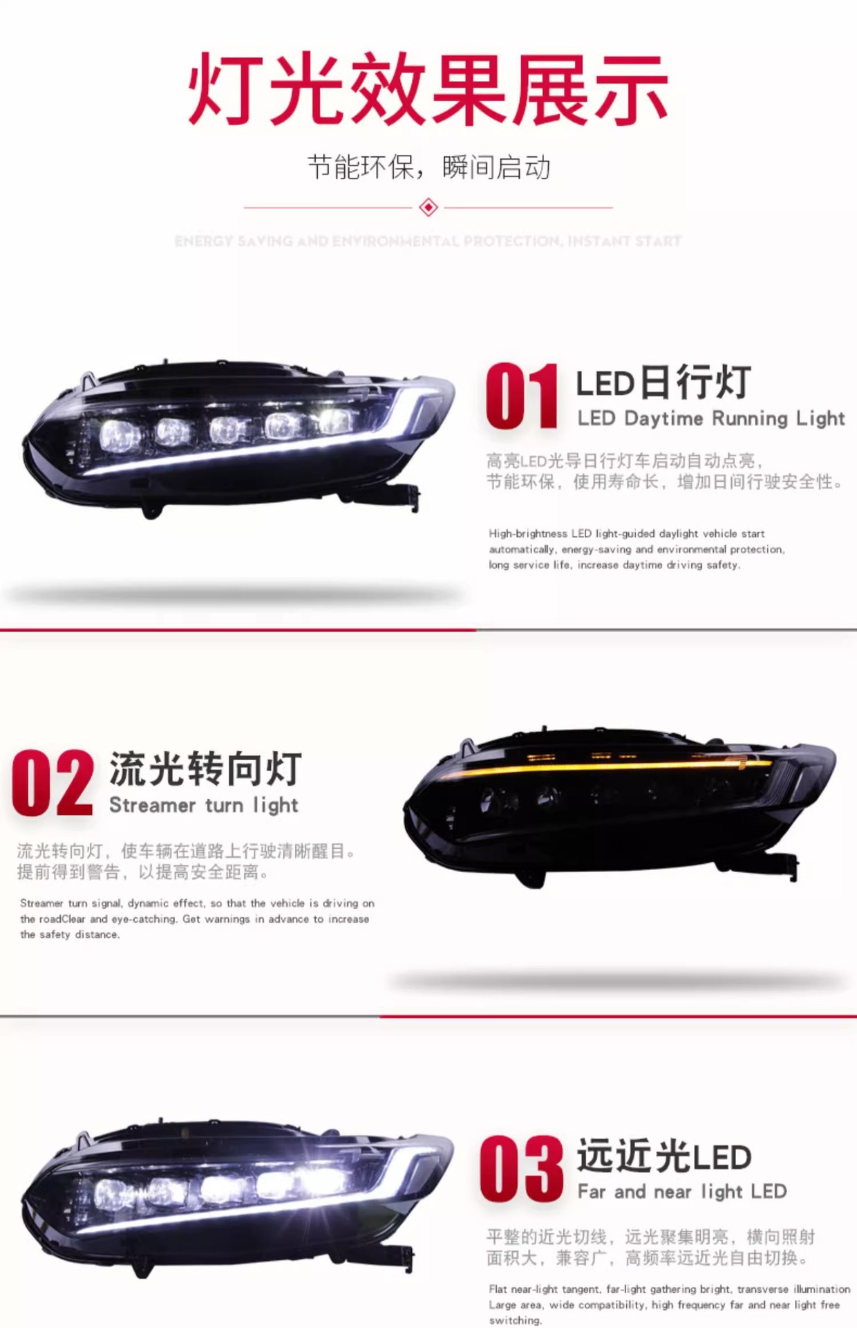 Full LED Matrix Headlight Assembly with LED DRL Flowing Turn Signal for Honda Accord 10th Gen