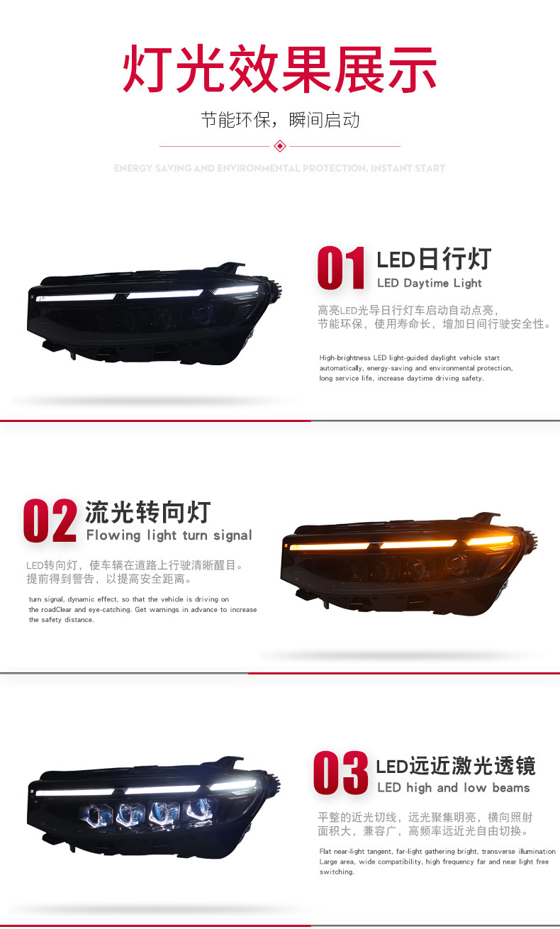 - Modern Aesthetic Upgrade: Integrated with stylish LED daytime running lights (DRL) and dynamic turn signals, transforming your vehicle’s front-end appearance with a modern, high-end look.