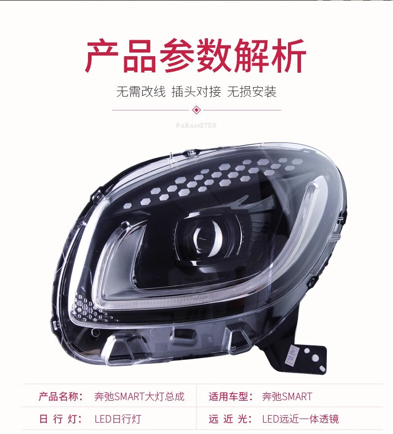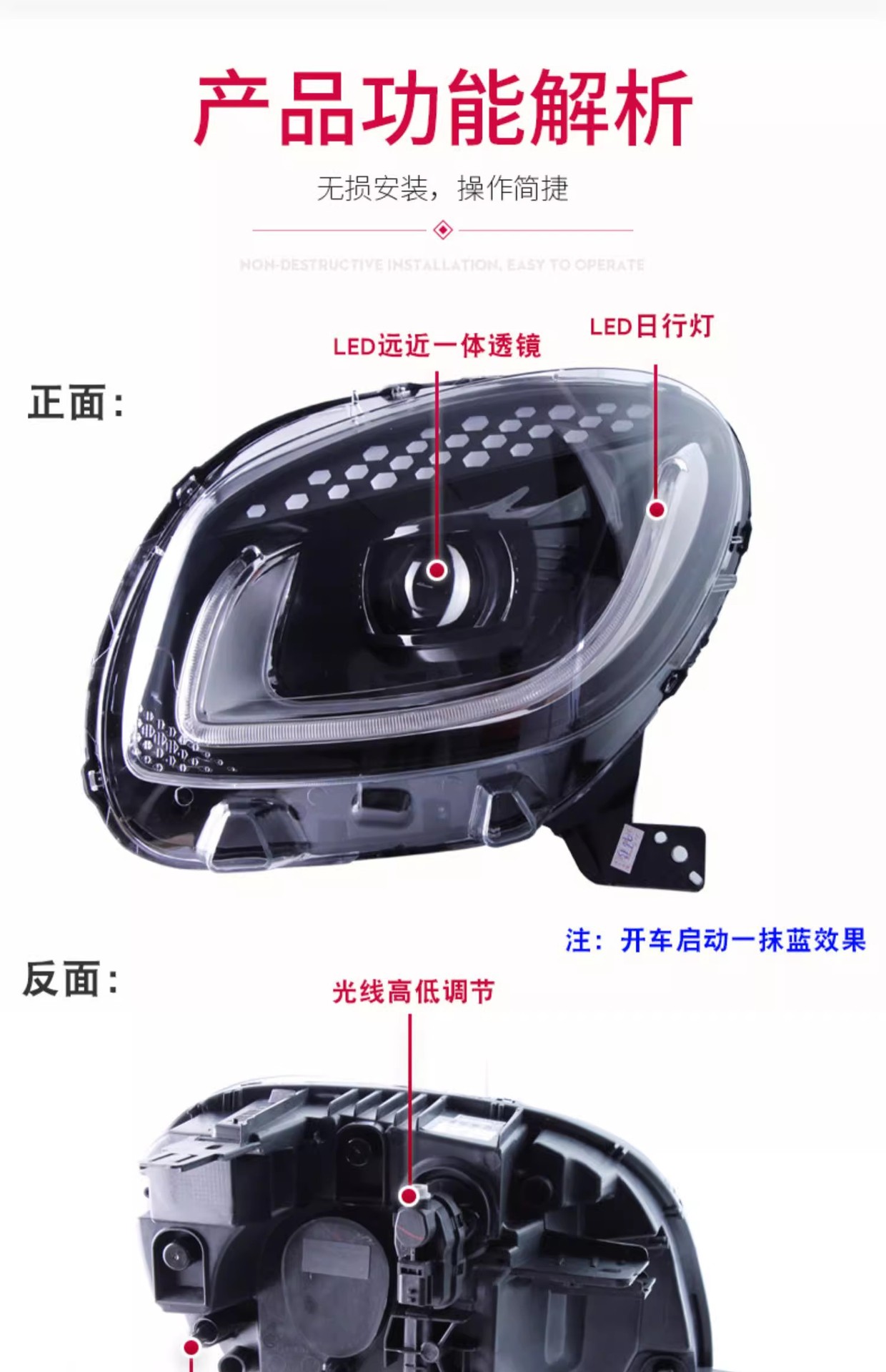 Full LED Projector Headlights Assembly with LED Daytime Running Light for Mercedes-Benz Smart
