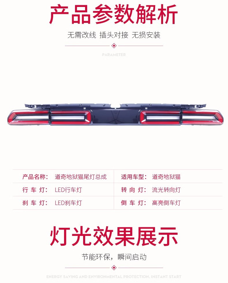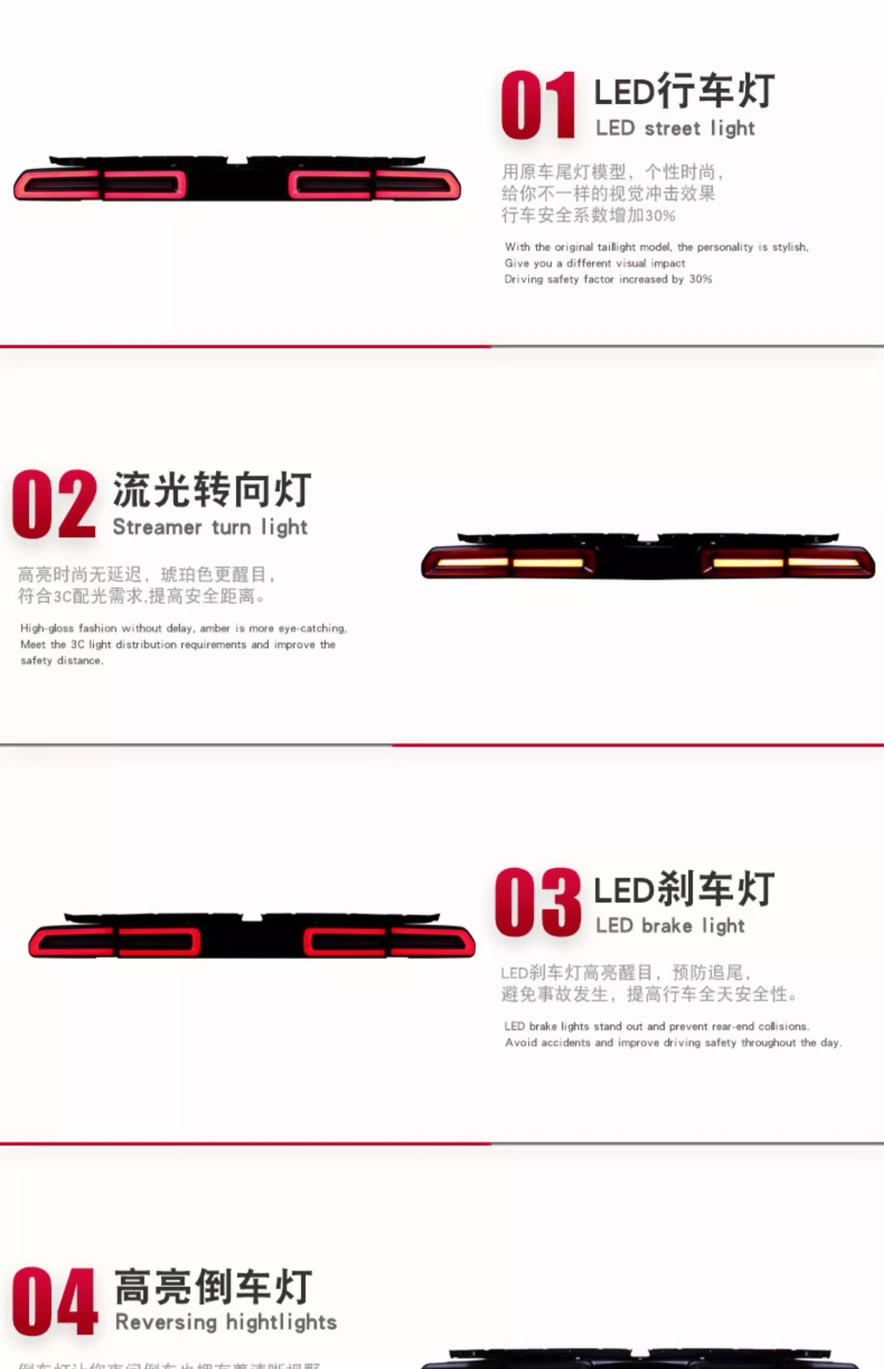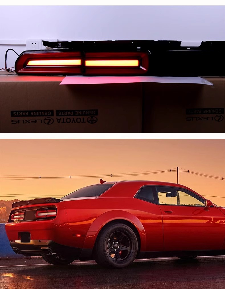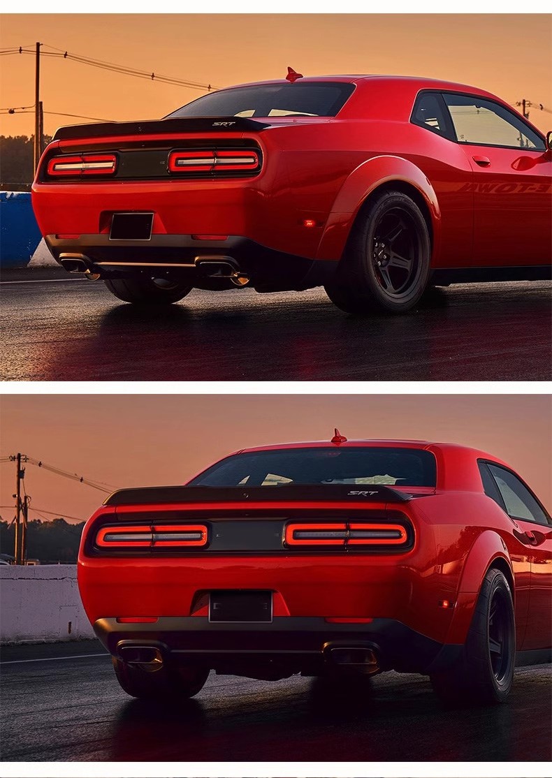 - Stylish Hellcat Inspired Design: Transforms the rear appearance of your Challenger with a custom Hellcat-style look, available in both red/white or smoked lens options, enhancing vehicle aesthetics.