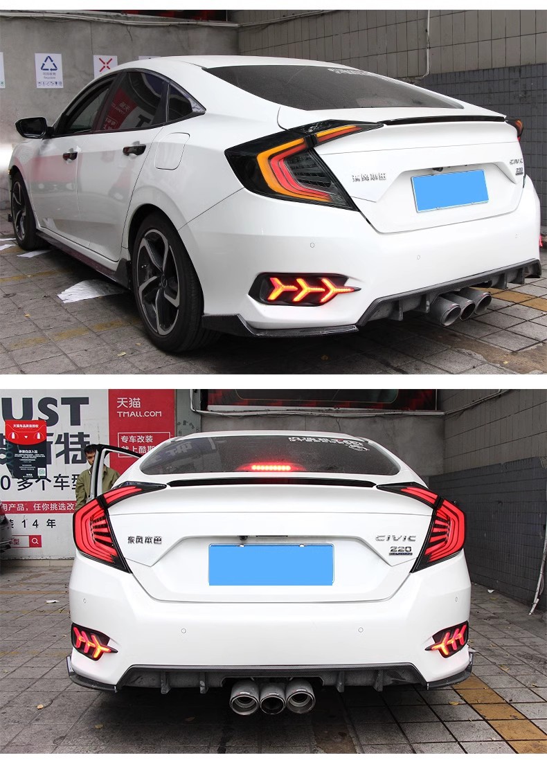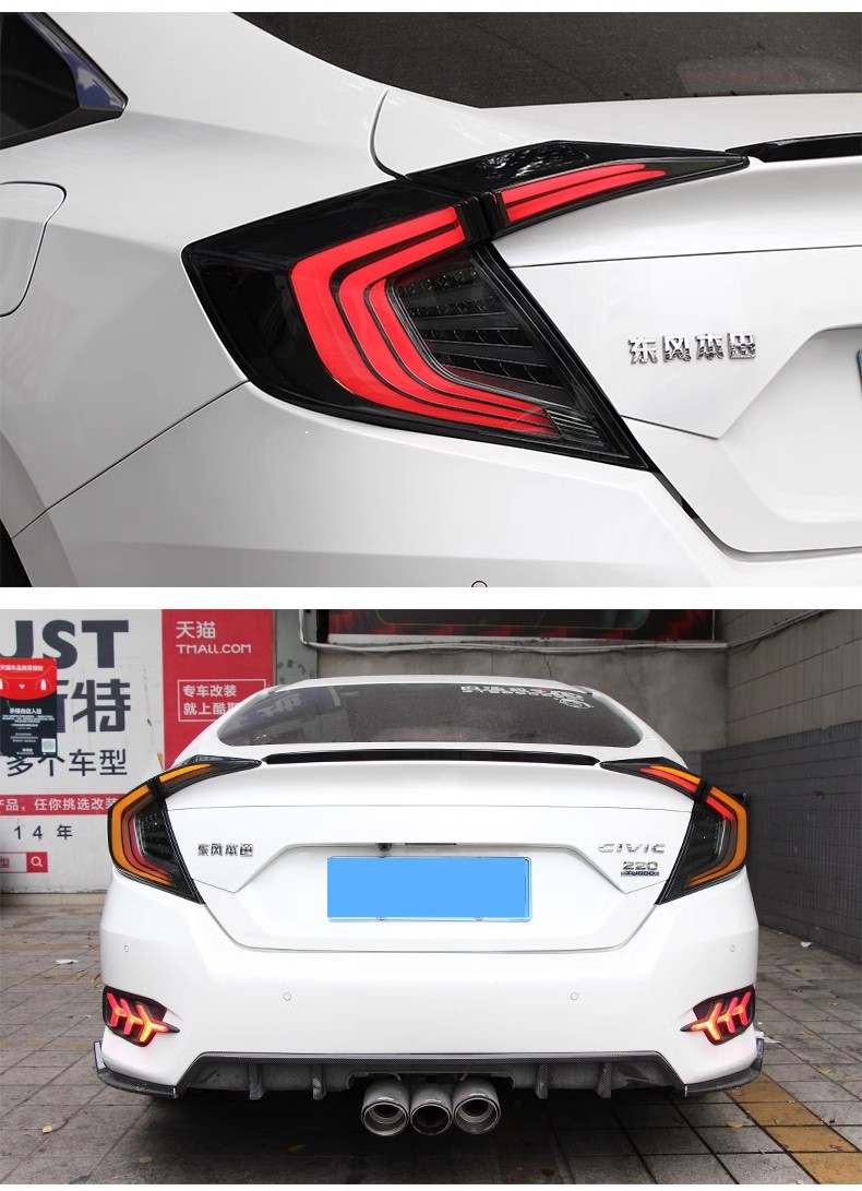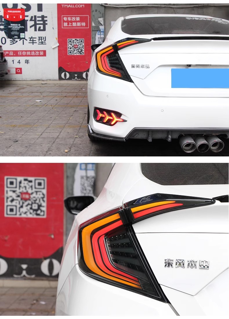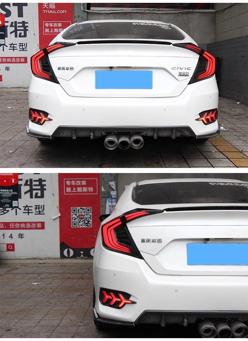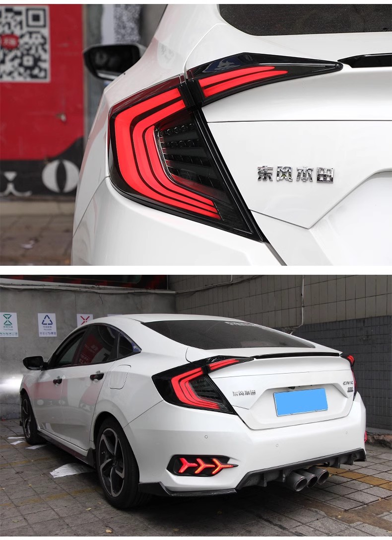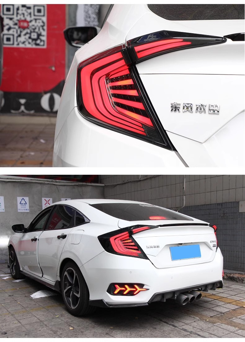Full LED Tail Light Assembly (Pair) with Scanning Breathing Flowing Turn Signal for Honda Civic 10th Gen (2016-2020)