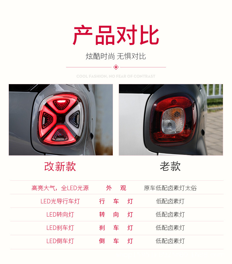 Full LED Tail Light Assembly EQ Style DRL Brake Light for Mercedes-Benz Smart (2015-2019)