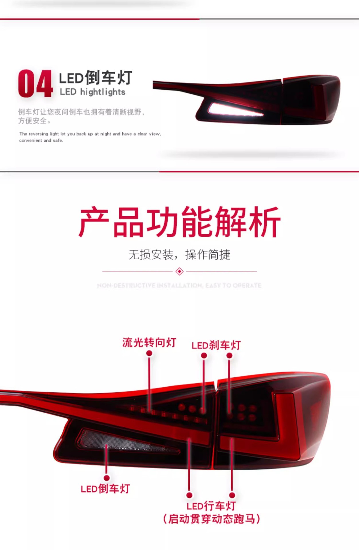 - Easy Plug-and-Play Installation: Engineered for a straightforward, non-destructive installation process, allowing for direct replacement of your original tail lights without the need for complex wiring modifications or special tools.