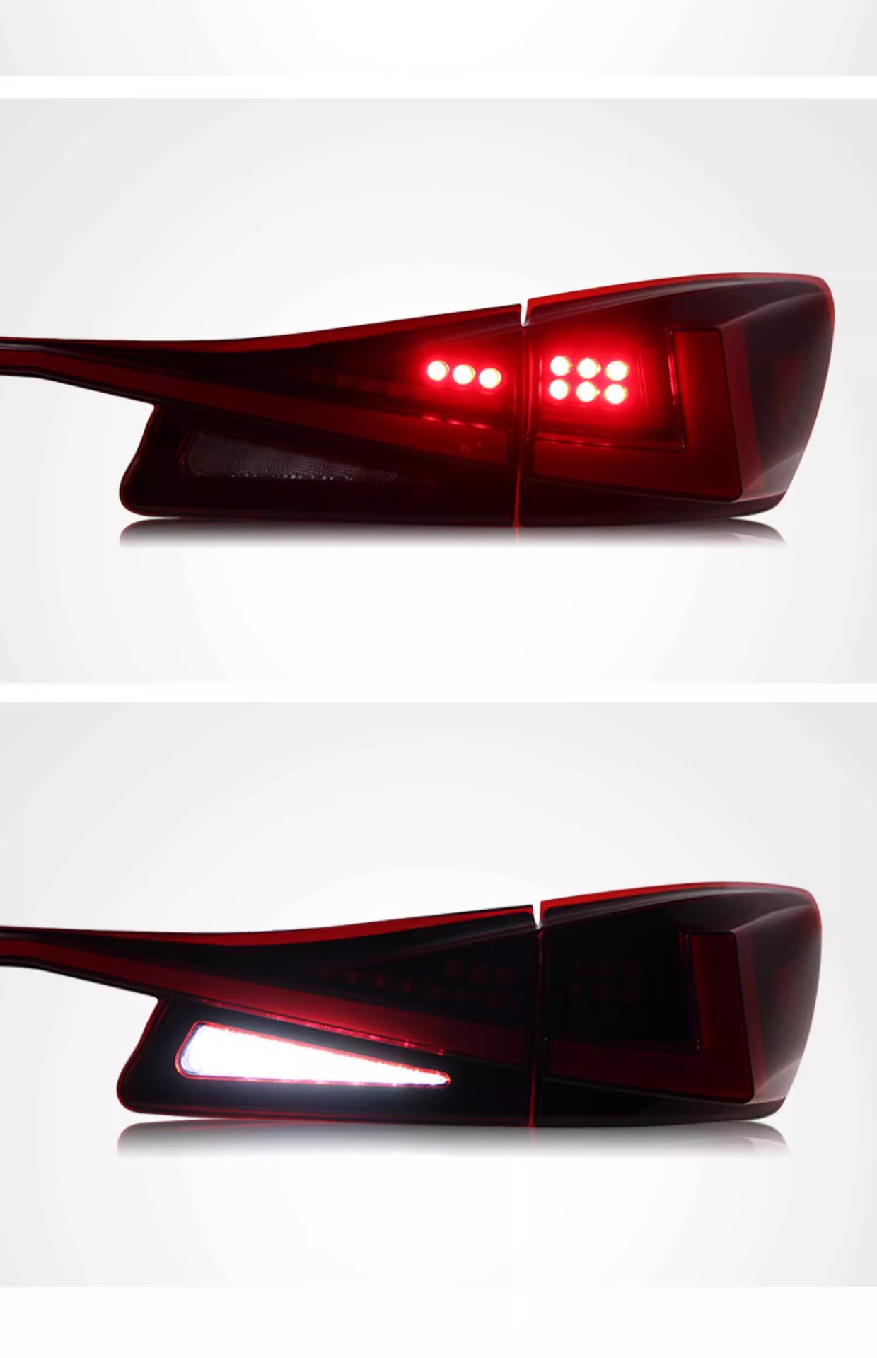 - Stylish Red/Smoked Design Options: Available in vibrant red or sleek smoked lens finishes, these tail light assemblies elevate your vehicle’s appearance, bringing a customized and updated look to the rear of your Lexus IS.