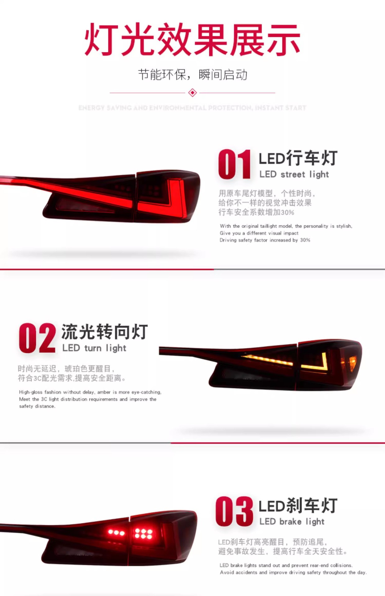- Dynamic Flowing Turn Signal: Features an integrated LED flowing turn signal function, providing a distinctive and eye-catching animated light sequence that significantly improves signaling clarity and adds a luxurious touch.