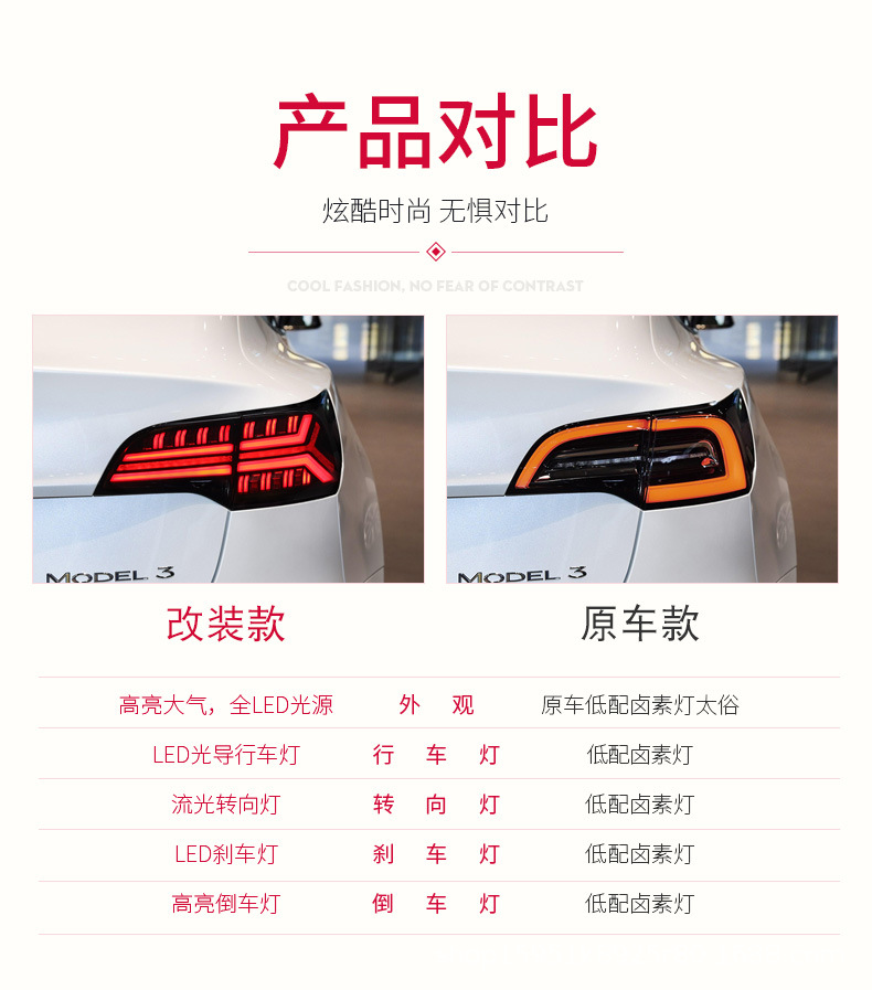 Full LED Tail Light Assembly LED Sequential Turn Signal Running Light for Tesla Model 3 Model Y (2017-2023)