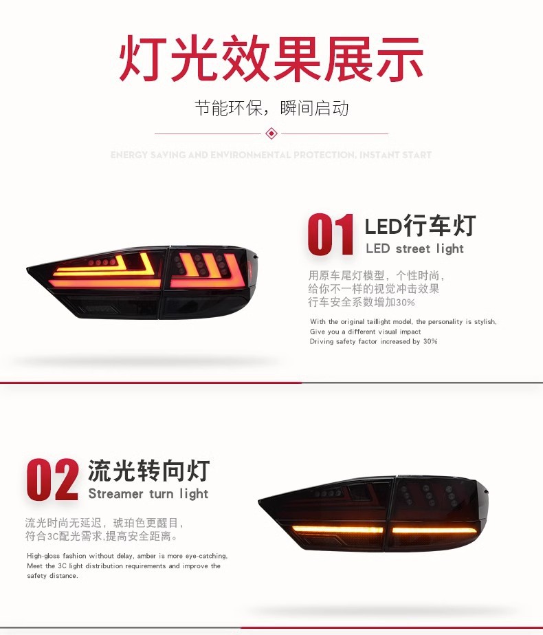 - Enhanced Styling: Upgrade your vehicle’s appearance with a modern LED tail light design, including dynamic sequential turn signals and integrated daytime running lights for a distinctive look.
