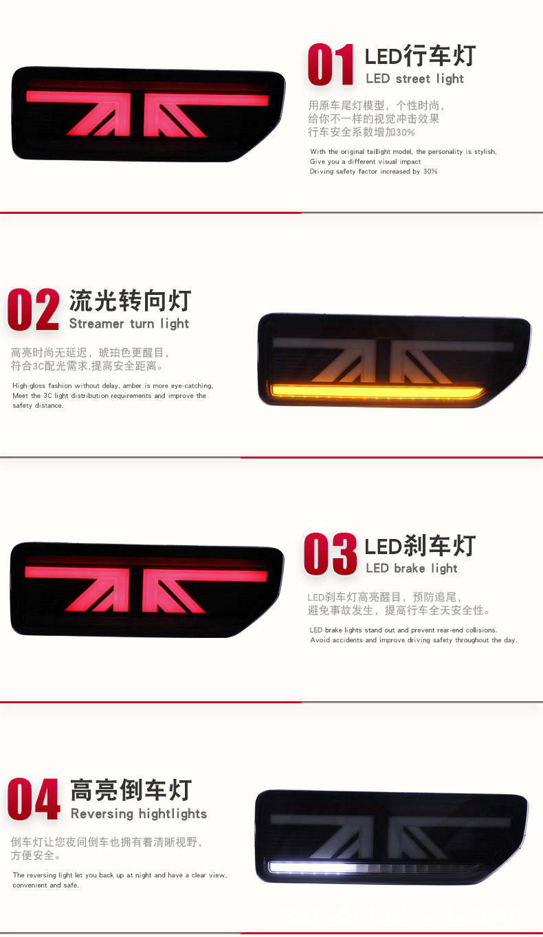 - Premium LED Technology: Features full LED illumination for brake lights, running lights, and dynamic sequential turn signals, providing superior brightness, faster response, and enhanced road safety.