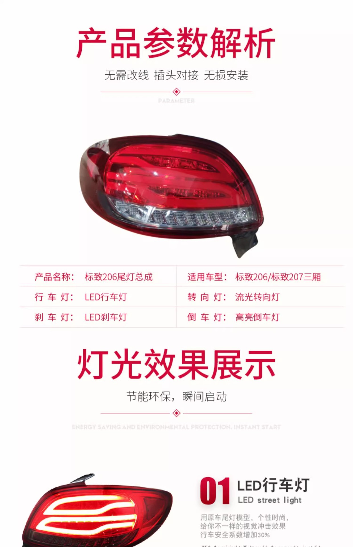 Full LED Tail Light Assembly for Peugeot 206 207 Sedan Hatchback Running Brake Reverse Signal Lamp Conversion