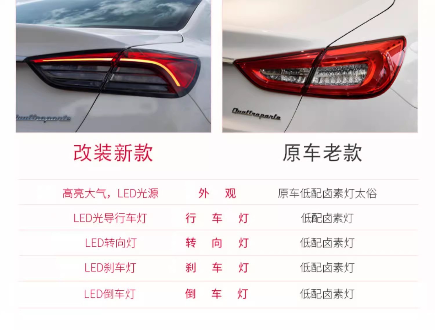 - Complete Tail Light Upgrade: Package includes one full LED tail light assembly (old-to-new conversion). Upgrade your Maserati总裁 to modern LED lighting for a sophisticated appearance and superior illumination.