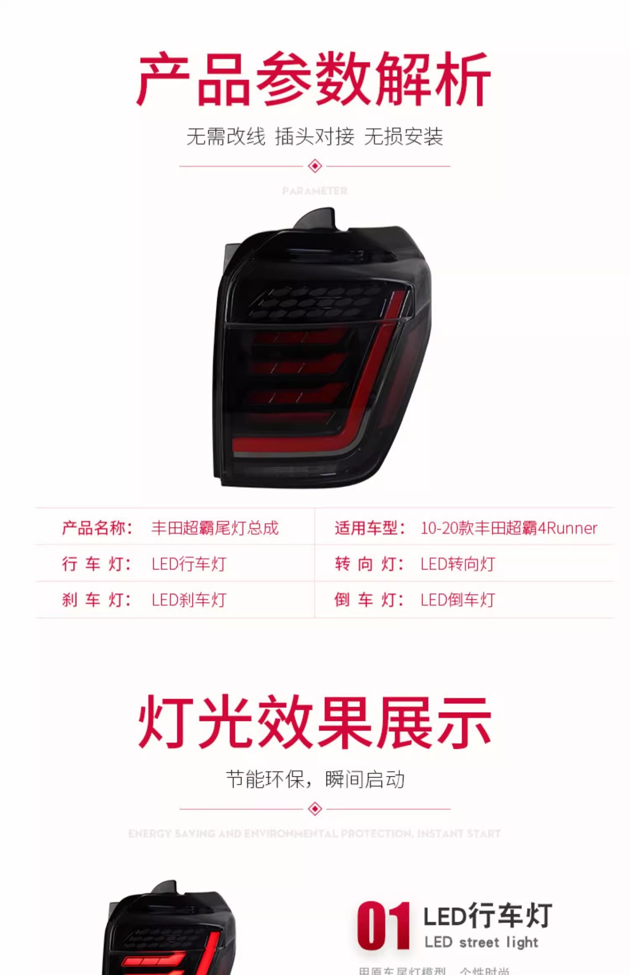 Full LED Tail Light Assembly for Toyota 4Runner (2018-2020) with Dynamic Turn Signals