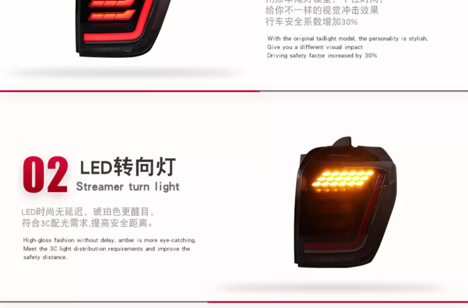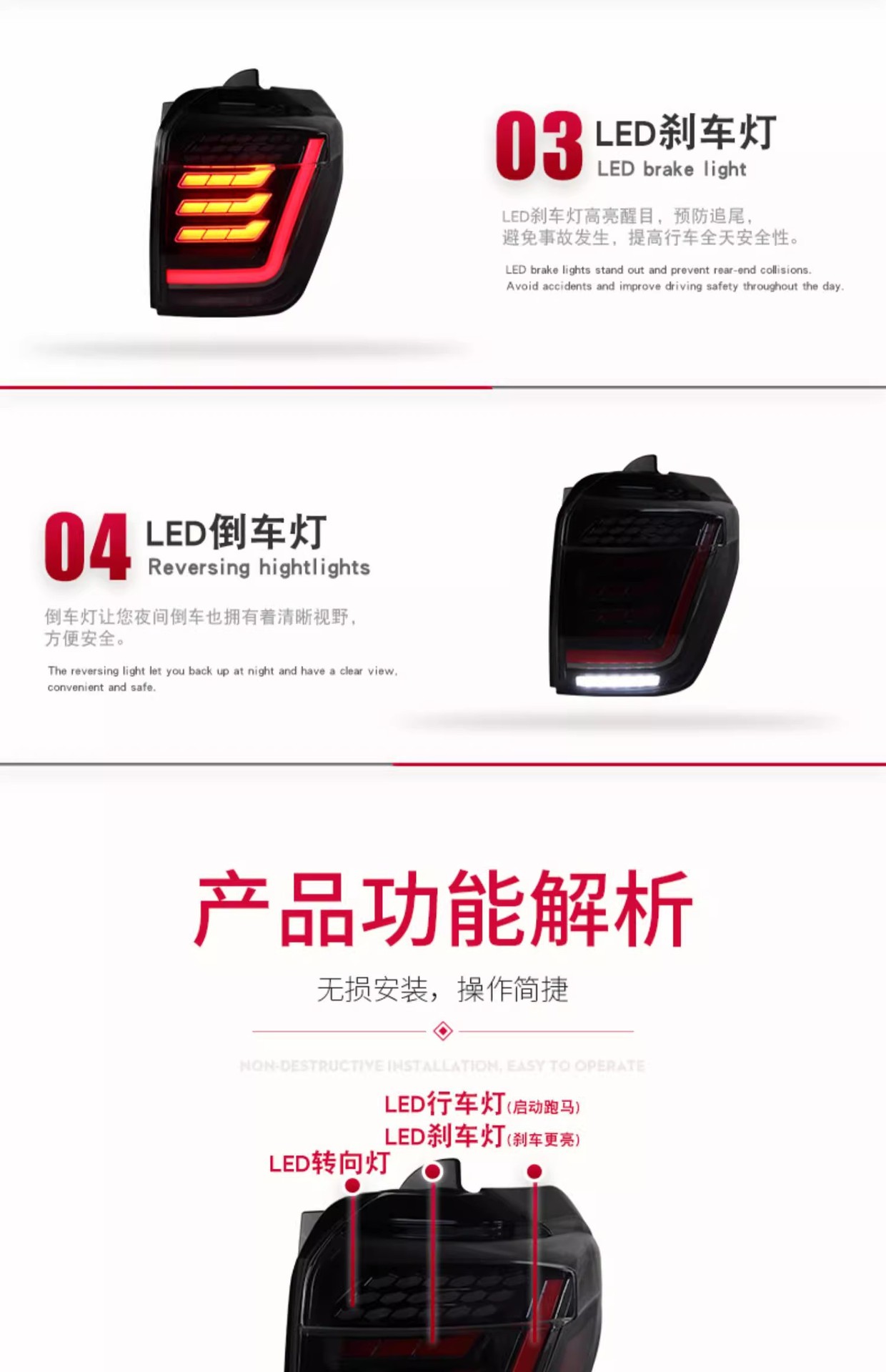 - Complete Set & Safety: Includes a full LED tail light assembly (specify quantity if pair) with integrated running and dynamic turn signal functions, significantly improving rear visibility and driving safety.