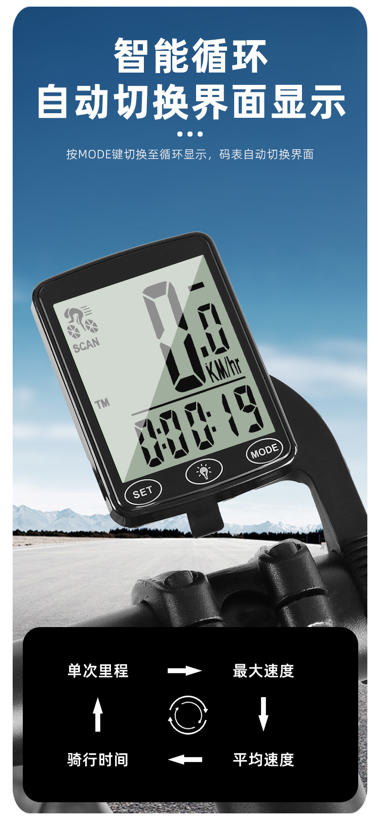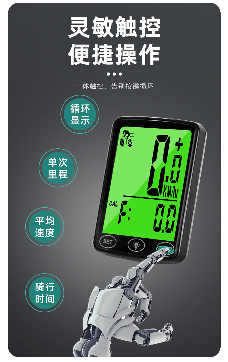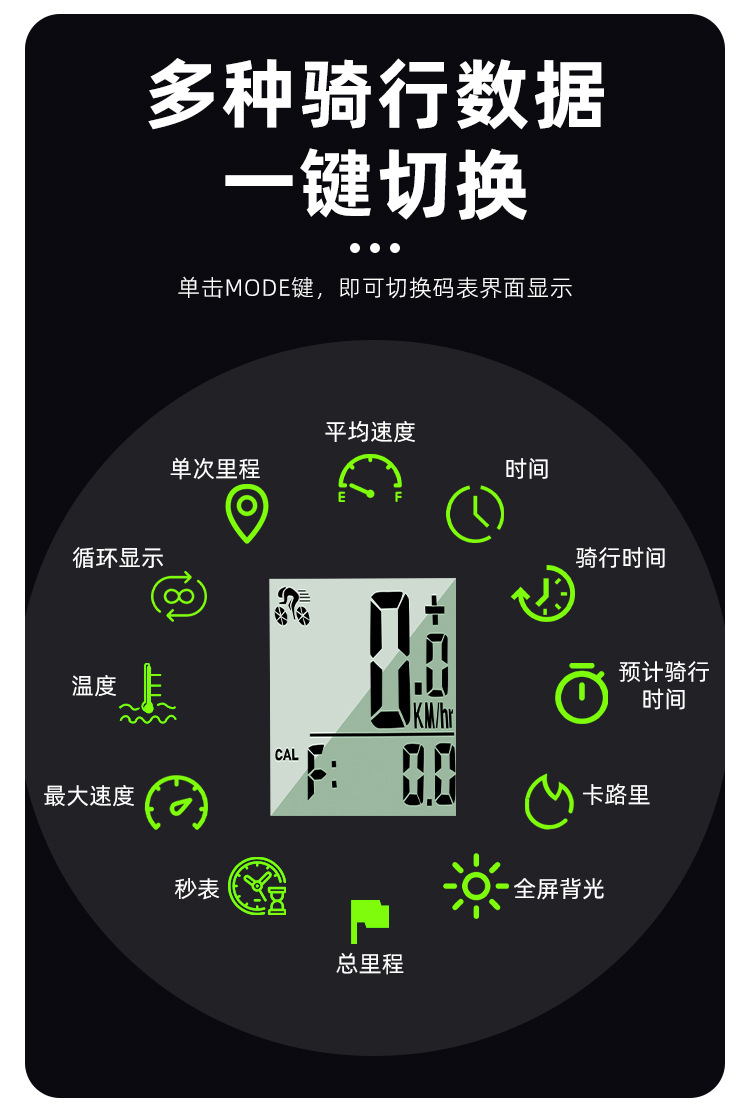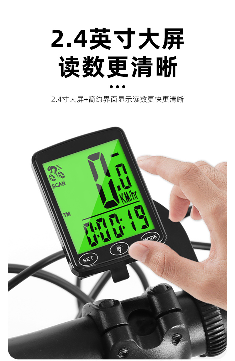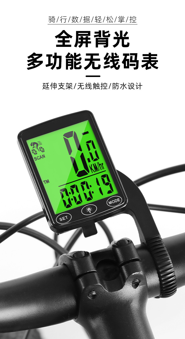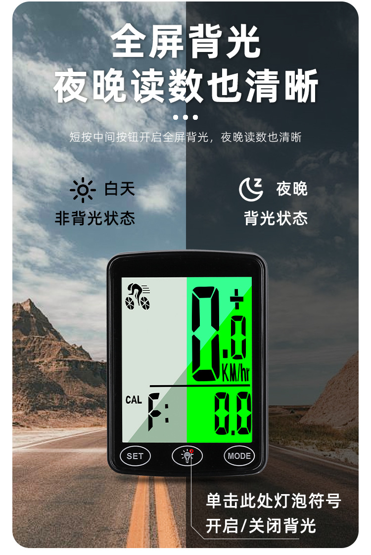Full Screen Backlit Wireless Bicycle Computer for Mountain Bike Cycling