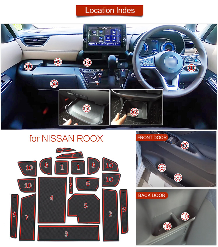 Full Set Anti-Dust Anti-Slip Car Gate Slot Mats & Console Storage Pads for Nissan ROOX