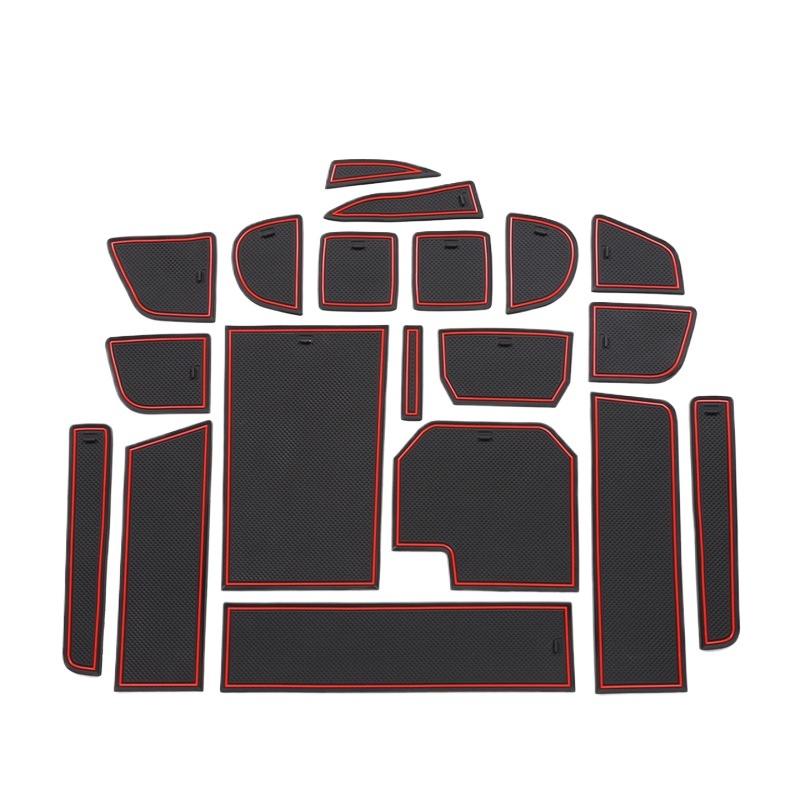 - Performance-Driven Design: Custom-cut mats designed to snugly fit into various storage compartments like door slots, center console, and cup holders, preventing items from sliding and rattling.