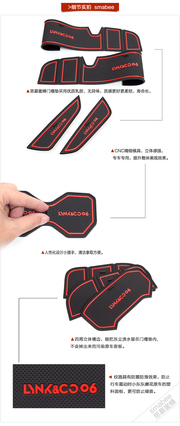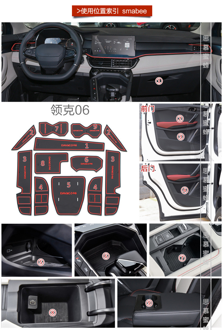 Full Set Anti-Dust Anti-Slip Console Cup Holder Door Slot Car Interior Mats for Lynk & Co 06