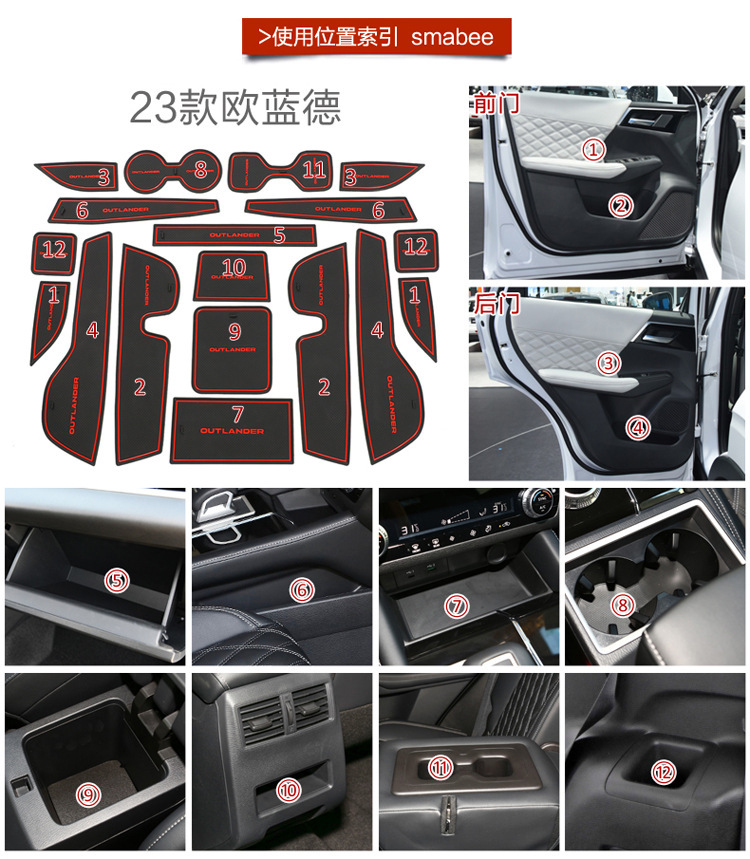 - Direct Fitment: A perfect replacement for Mitsubishi Outlander 2023. This full set of door slot mats and armrest storage pads are custom-designed for precise fitment.