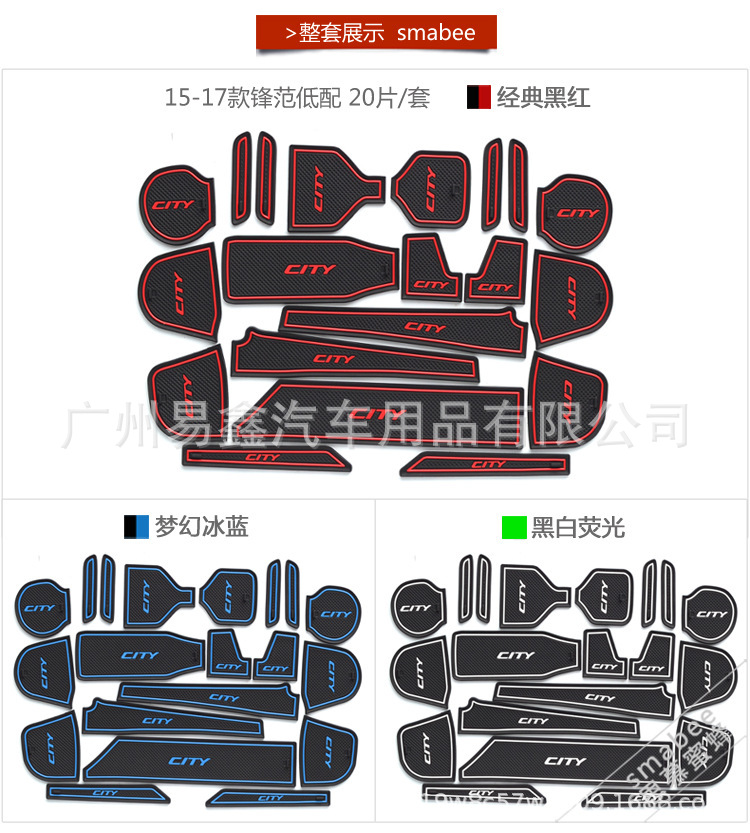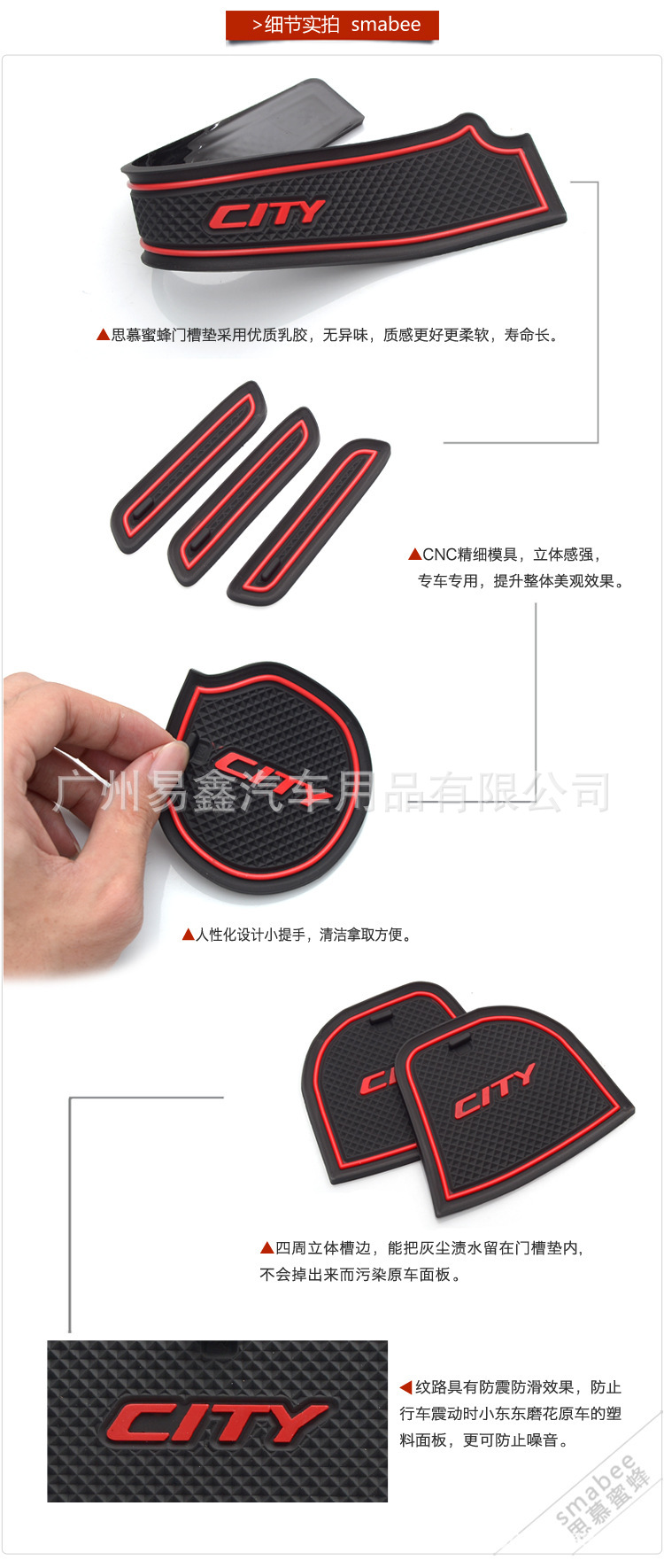 Full Set Anti-Dust Pad Liners Gate Slot Mat for Honda City 2015-2019 Interior Cup Holder Storage Console Non-Slip Red Trim