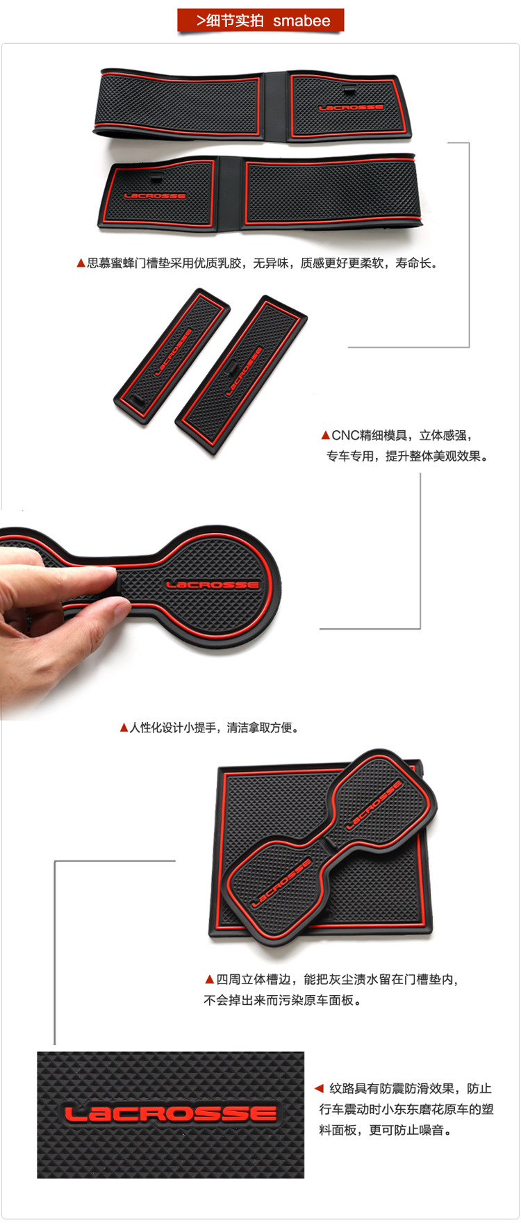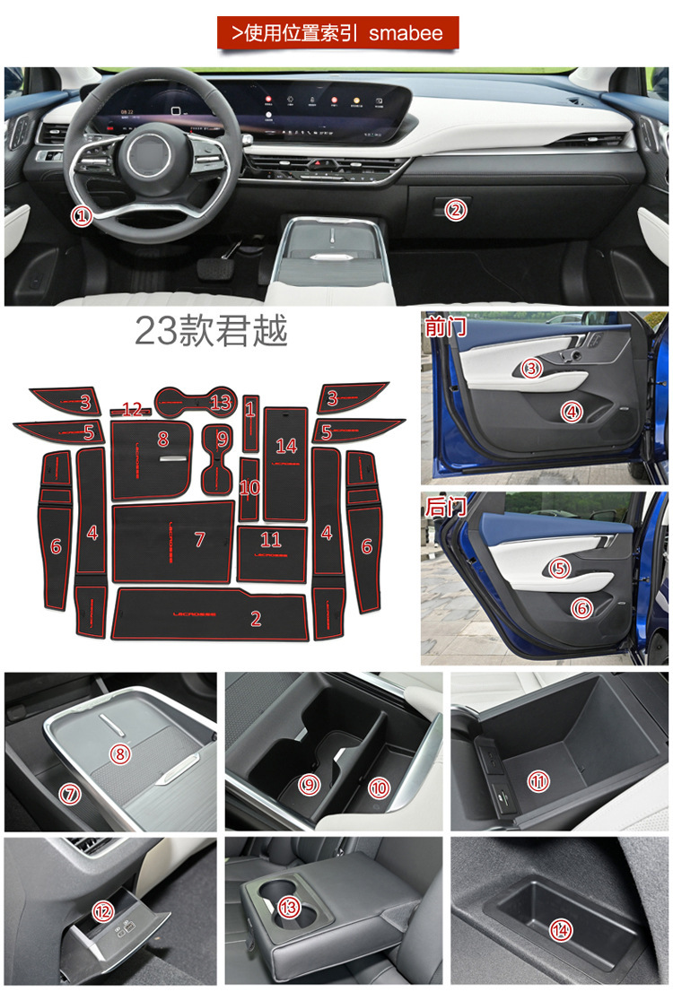 Full Set Anti-Dust Rubber Gate Slot Mat Cup Holder Lining Pads for Buick Lacrosse 2023